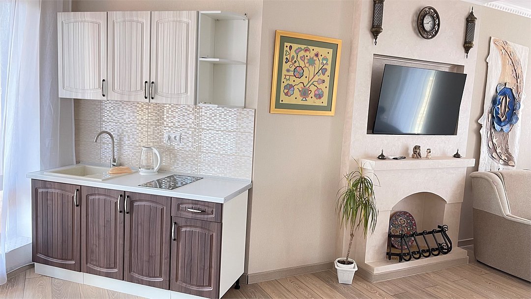 Wi-Fi, холодильник, кондиционер, светильник, фен, микроволновая печь, тапочки, балкон с красивым видом, кровать «Queen size», диван, кресла, стулья, шкаф для одежды, две комнаты, кухня, набор посуды, сейф, чайник, раковина, мягкая мебель, душ, вид во двор, ламинат, кухонная посуда, столовые приборы, туалет, раскладной диван, телевизор с плоским экраном, мини-холодильник, кухонный уголок, номер для некурящих, два дивана-кровати, без питомцевВ аппартаментах