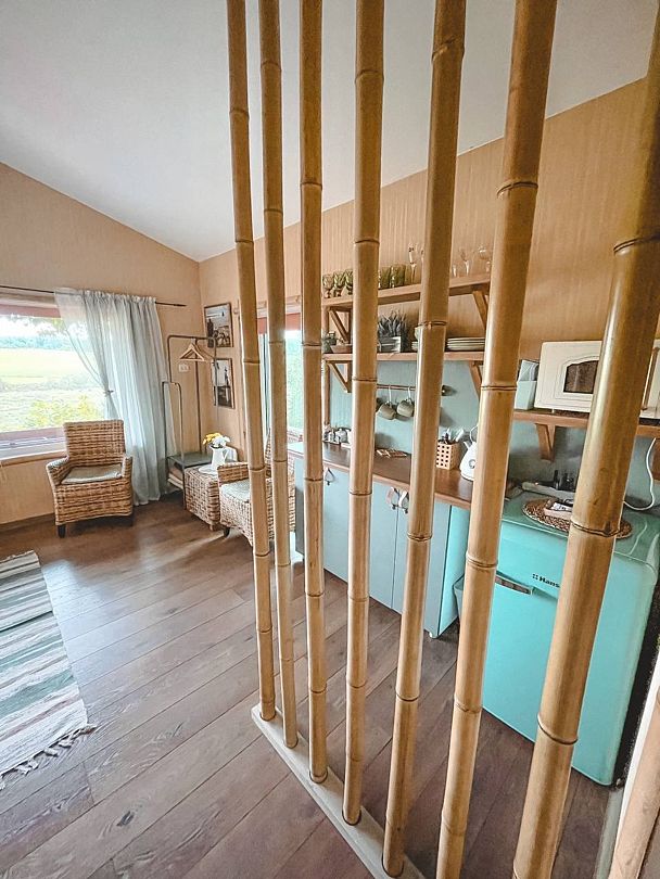 Вдали от городской суеты, среди зелёных полей, стоит уютное бунгало на двоих, здесь можно наслаждаться тишиной и спокойствием, любуясь прекрасным видом из окна,а выходя на балкон можно получить полное удовлетворение от вида, на бескрайние поля и леса.