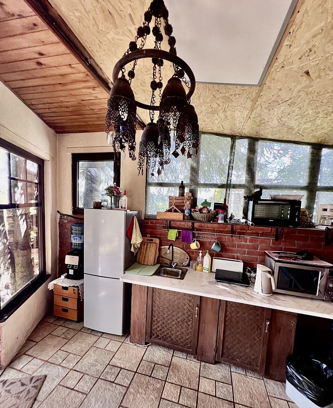Рядом с бунгало на холме есть летняя кухня с бытовой техникой и посудой, для любителей шашлыка и блюд на гриле, есть мангальная зона.