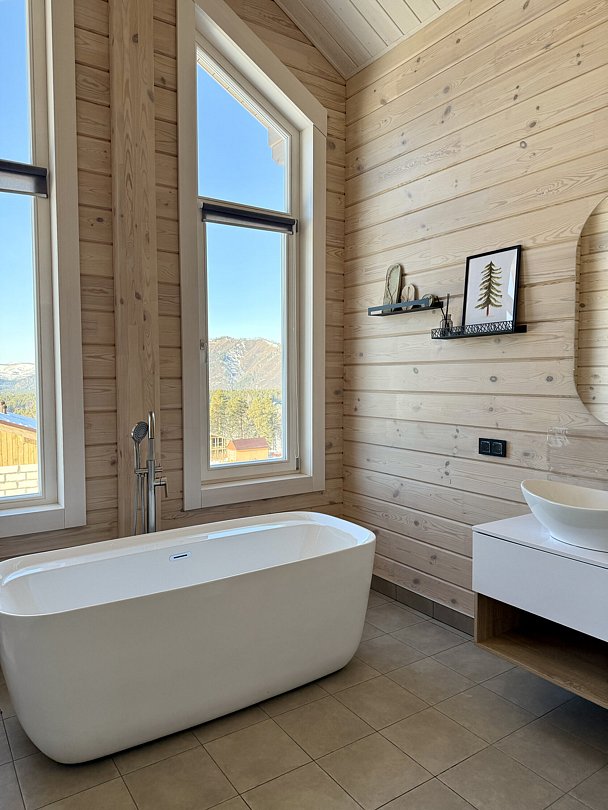 Дом вместимостью до 12 гостей находится на приватной территории и оборудован всем необходимым для вашего комфортного отдыха. Для вас 4 просторные спальни с большими окнами, кухня, полностью оснащенная современной техникой и обеденной зоной, 3 санузла с душевыми кабинами и ванной с панорамным видом, просторная терраса с видом на горы.