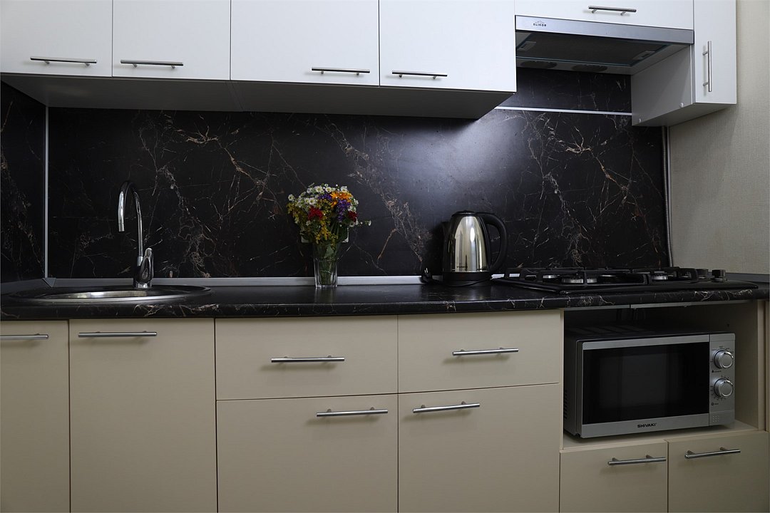 Комфортные двухкомнатные апартаменты оснащены всем необходимым для комфортного проживания. Кухня, холодильник, микроволновая печь, посуда, душ, стиральная машина, фен, телевизор, интернет.Услуги и удобства