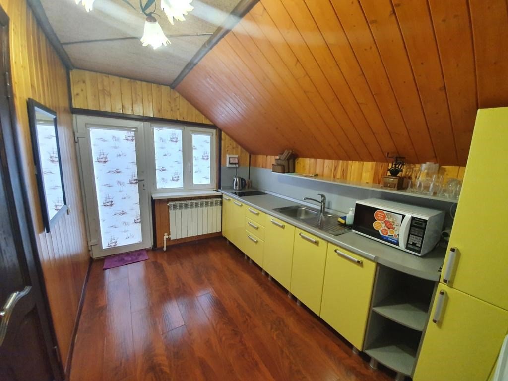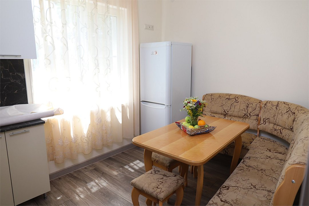 Комфортные апартаменты на втором этаже, со всеми удобствами. Оснащённые всем необходимым для комфортного проживания. Кухня, холодильник, микроволновая печь, посуда, душ, стиральная машина, фен, телевизор, интернет. Вместимость до 9 гостейУслуги и удобства