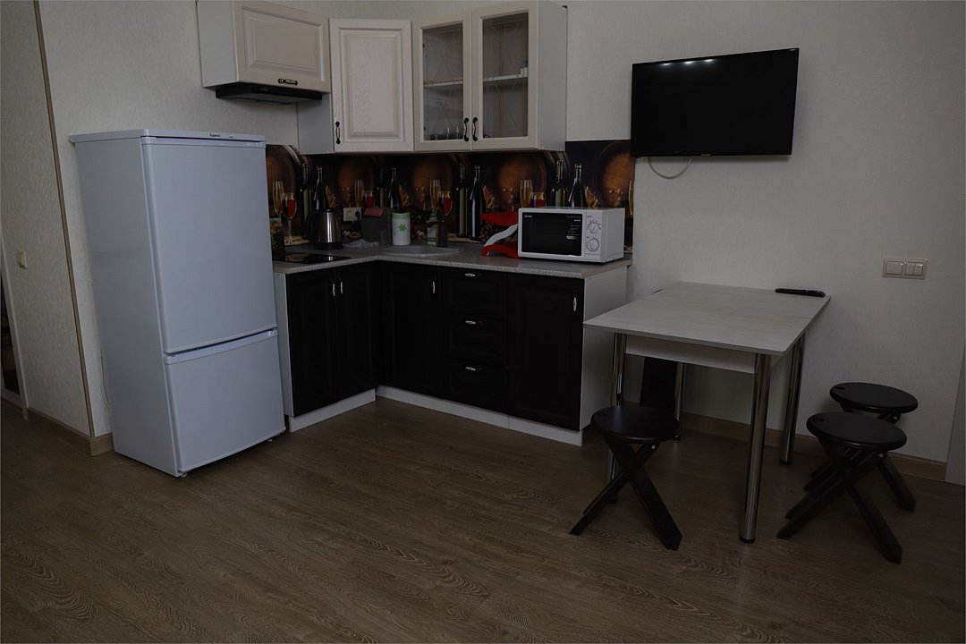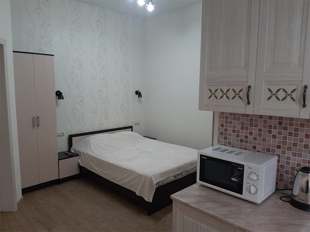Комфортная небольшая студия со всеми удобствами. Оснащённая всем необходимым для комфортного проживания. Кухня, посуда, душ, кондиционер, телевизор, холодильник, интернет.Услуги и удобства