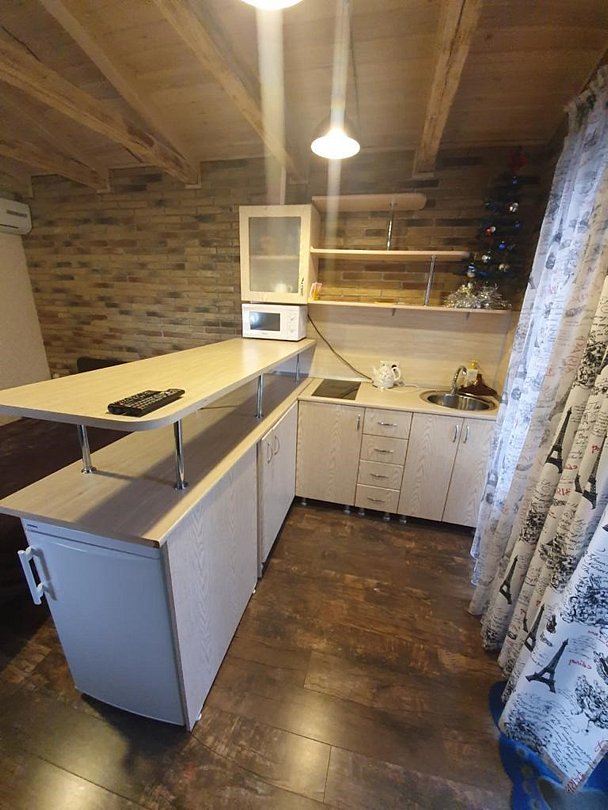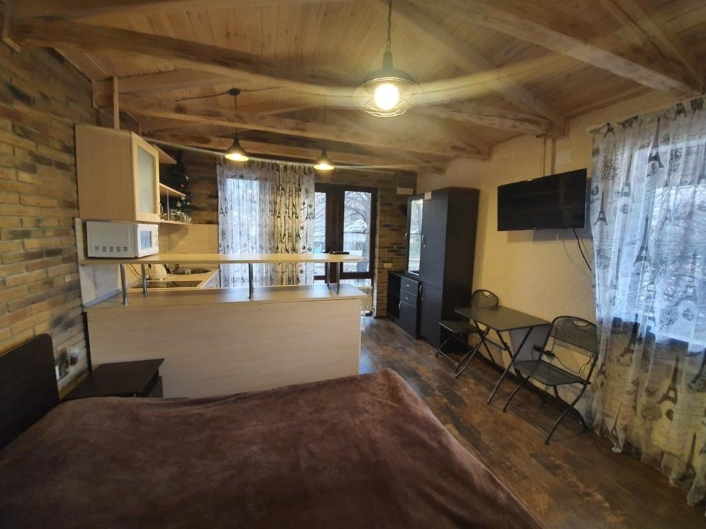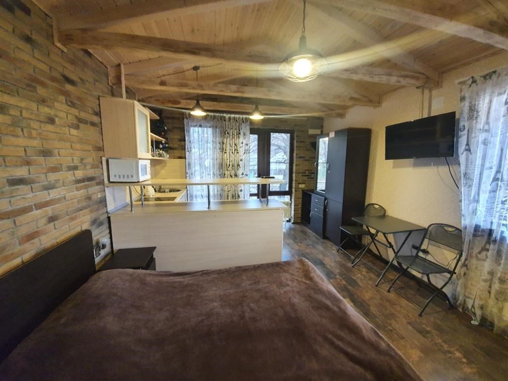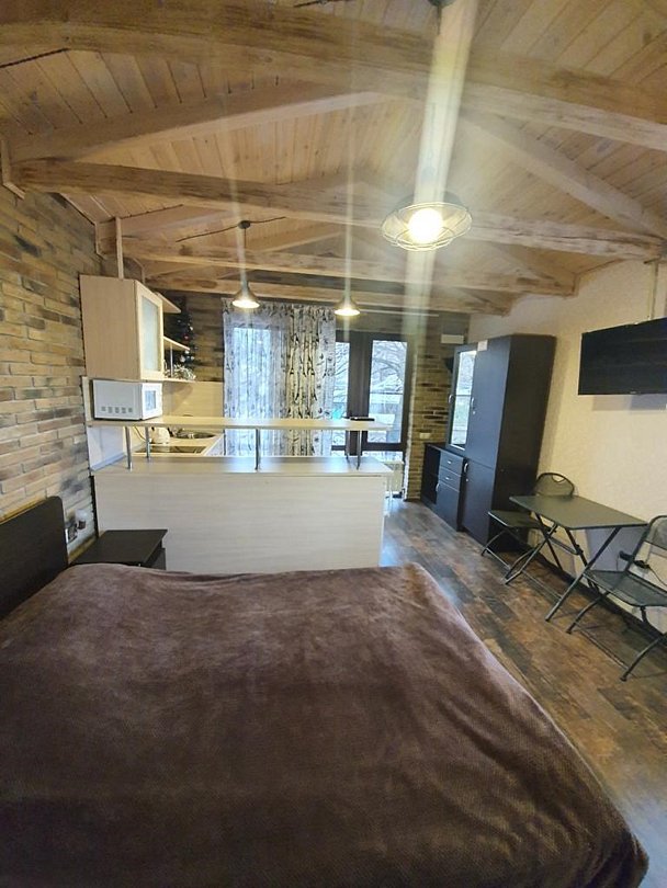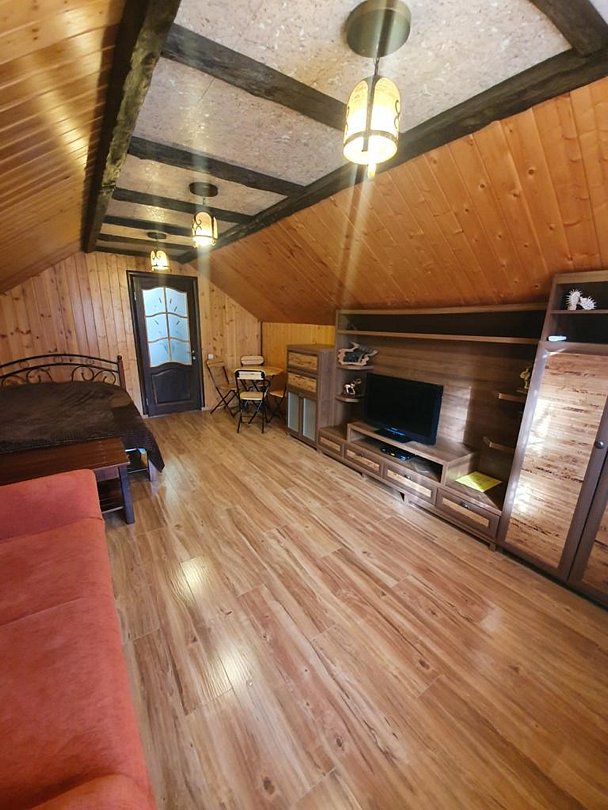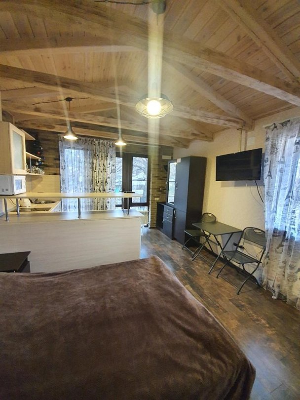 Комфортная студия на мансарде, со всеми удобствами. Оснащённая всем необходимым для комфортного проживания. Кухня, посуда, душевая, кондиционер, телевизор, интернет.Услуги и удобства