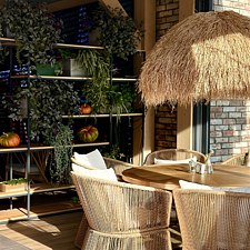 Новая уединенная веранда в светлых тонах и панорамными видами, идеально подойдет для частного события и семейного ужина. Веранда оснащена LED экраном и доступна круглый год.