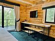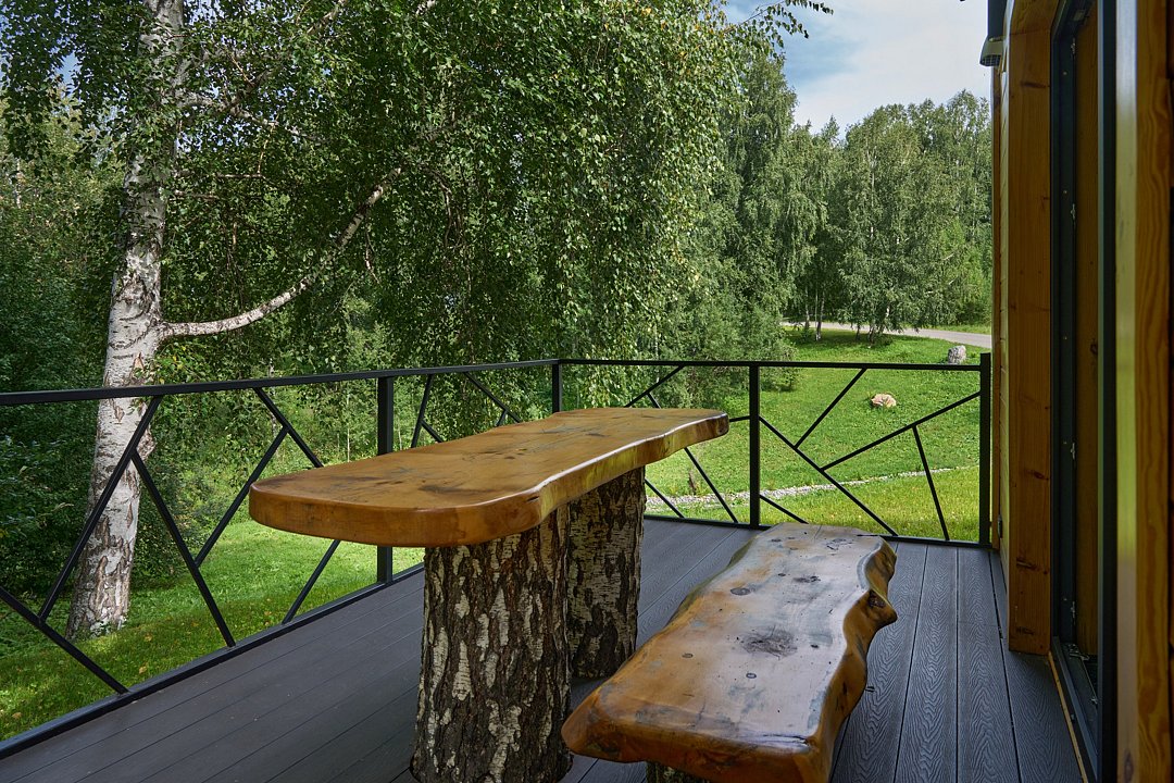 Уютная двухэтажная вилла из массива натурального дерева с террасой и живописным видом на горы и парк маралов. Дизайн интерьера выполнен в классическом стиле русской избы с современными элементами декора. Дом оснащен всем необходимым для комфортного проживания семьи или компании друзей: две спальни с одной двуспальной и двумя односпальными кроватями с ортопедическими матрасами, мягким белоснежным бельем, кондиционером, Smart TV, блэкаут шторами, чайно-кофейной зоной и функциональной ванной комнатой. Всем гостям предоставляется услуга персонального батлера, который будет на связи в круглосуточном режиме и выполнит любые просьбы.
