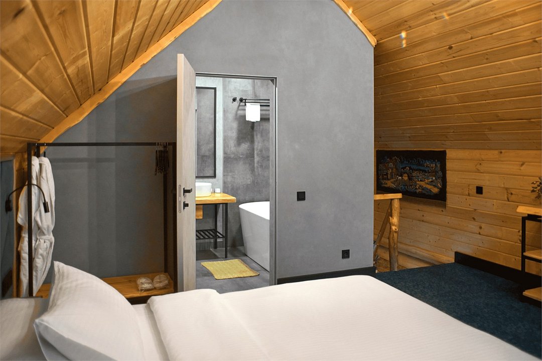 Двухэтажная вилла категории люкс улучшенный – идеальное место для отдыха и восстановления сил в горах Алтая. На первом этаже располагается зона спальни, душевая и выход на личную террасу, где можно проводить вечера в кругу близких и наслаждаться неповторимым видом на парк маралов. Второй этаж включает великолепную мастер-спальню, которая станет вашим приватным оазисом умиротворения. Элегантная мебель, мягкие текстуры и завораживающий вид создают атмосферу уюта. Каждая деталь виллы продумана с любовью к природе и комфорту: кедровые стены создают неповторимый аромат, видовая терраса позволяет наблюдать за величественными маралами в любое время суток, погружаясь в единение с природой. Всем гостям предоставляется услуга персонального батлера, который будет на связи в круглосуточном режиме и выполнит любые просьбы.