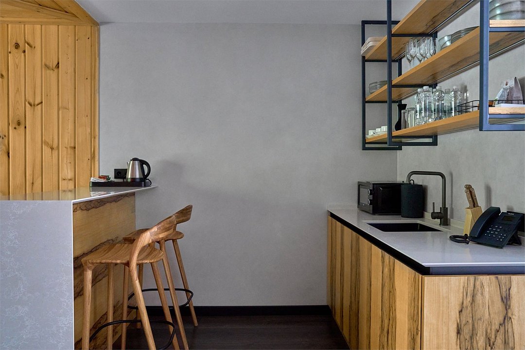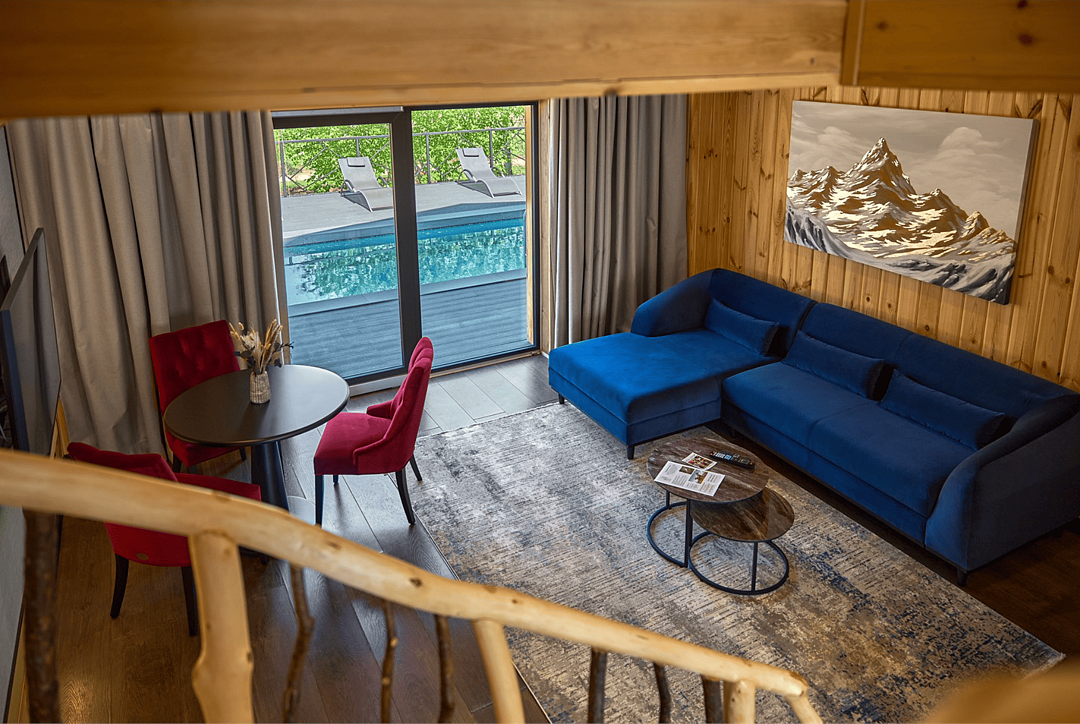 Стильный интерьер с акцентом на натуральные материалы идеально подойдет для романтического уикенда, семейного отдыха или вдохновляющего отпуска в компании друзей. На первом этаже располагается просторная гостиная с кухонной зоной, гостевым санузлом и выходом на террасу с бассейном, где можно проводить вечера в кругу близких и наслаждаться неповторимым видом на парк маралов. Второй этаж включает две спальни с кроватями king-size и ванную комнату. При одновременном бронировании двух дуплексов вся вилла становится вашей приватной резиденцией на Алтае. Также всем гостям предоставляется услуга персонального батлера, который будет на связи в круглосуточном режиме и выполнит любые просьбы.