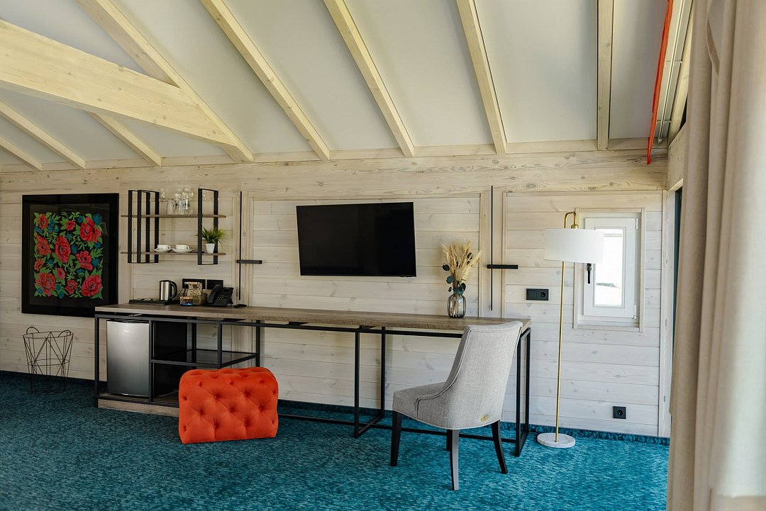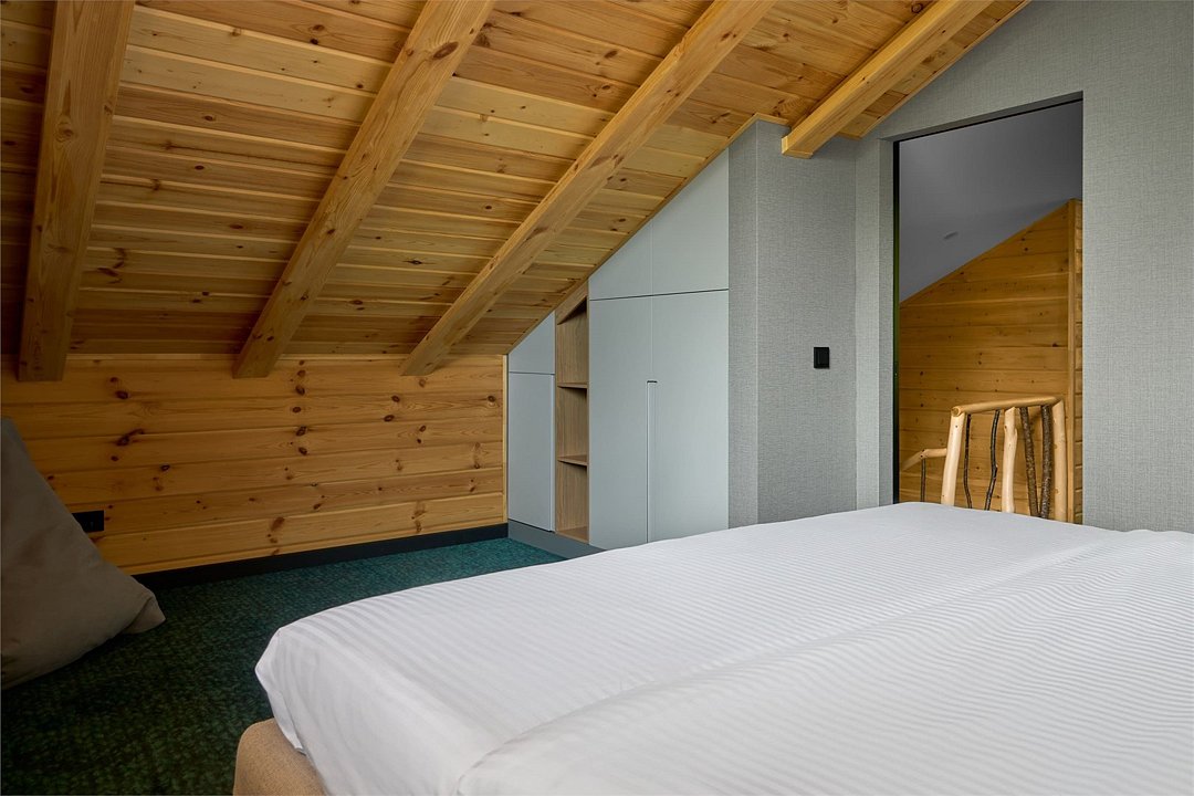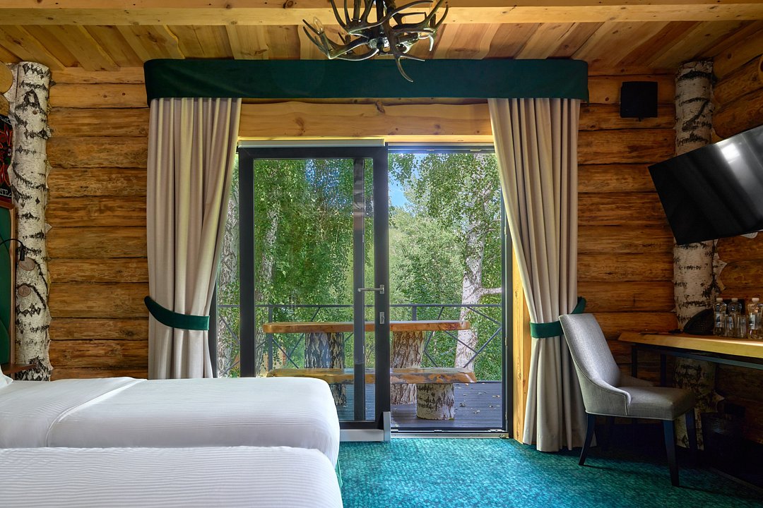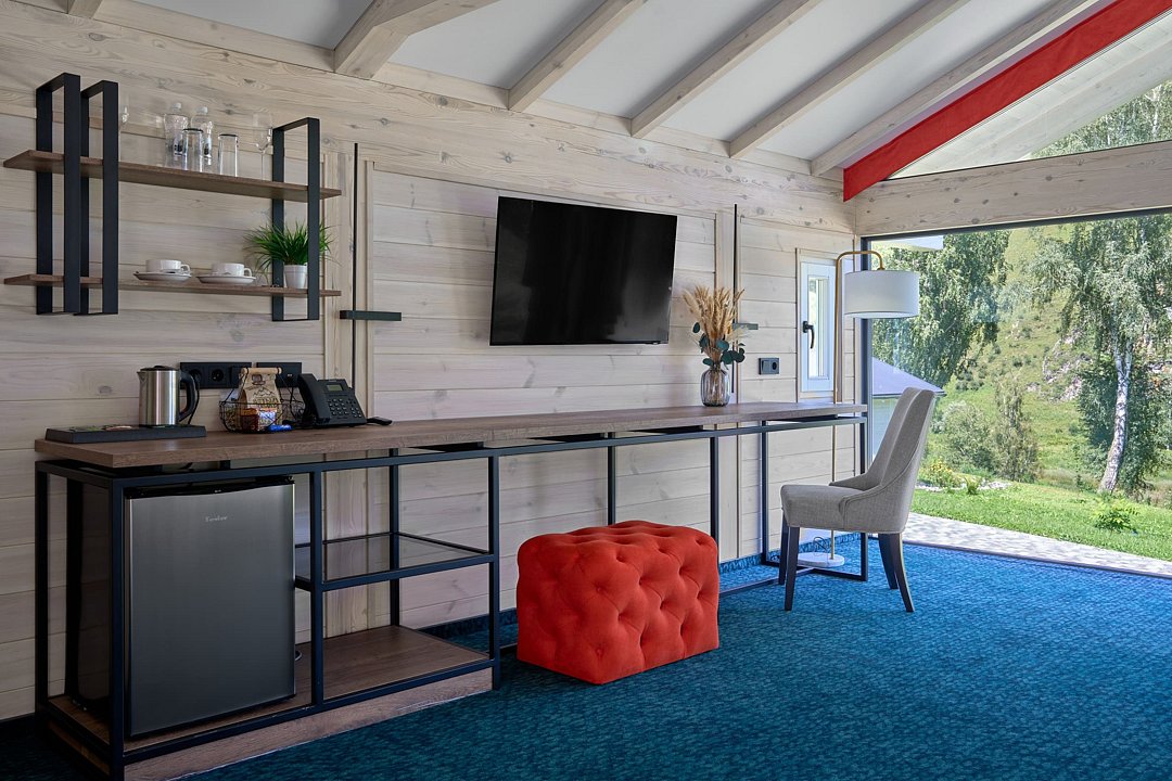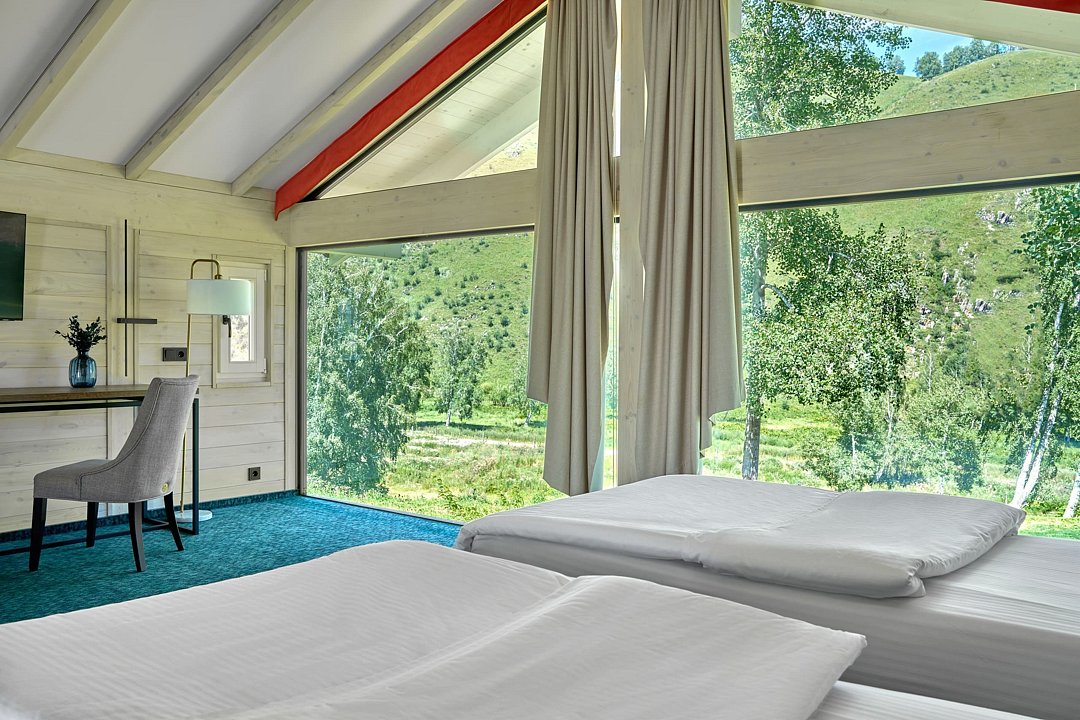 Просторное и стильное шале с панорамными окнами подарит завораживающий вид на парк маралов и горы Алтая. В шале есть все для качественного отдыха и комфортного сна: две кровати с ортопедическими матрасами, невесомые одеяла, климат-контроль, Smart TV, блэкаут шторы, приглушенный теплый свет, чайная зона и современная ванная комната. Натуральные материалы в интерьере создают уютную и теплую атмосферу, а панорамные окна позволяют наблюдать за величественными маралами в любое время суток, погружаясь в единение с природой. Всем гостям предоставляется услуга персонального батлера, который будет на связи в круглосуточном режиме и выполнит любые просьбы. Идеально для тех, кто ценит гармонию природы и комфорт.