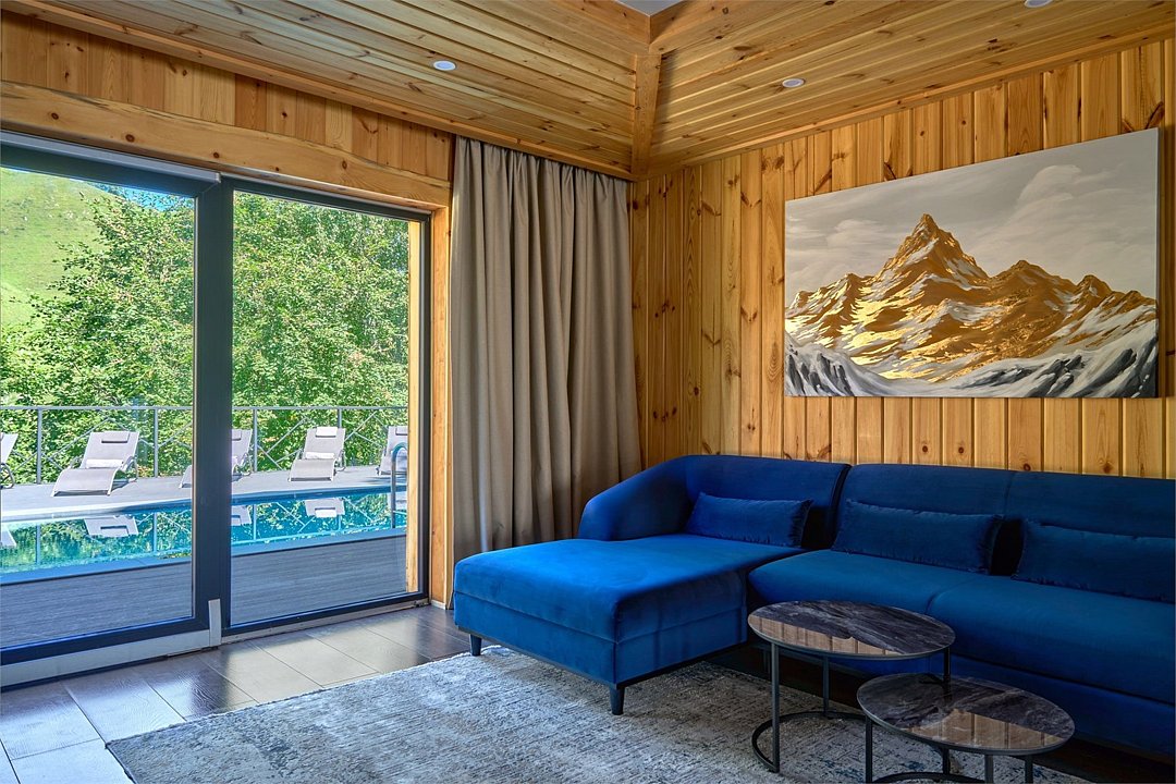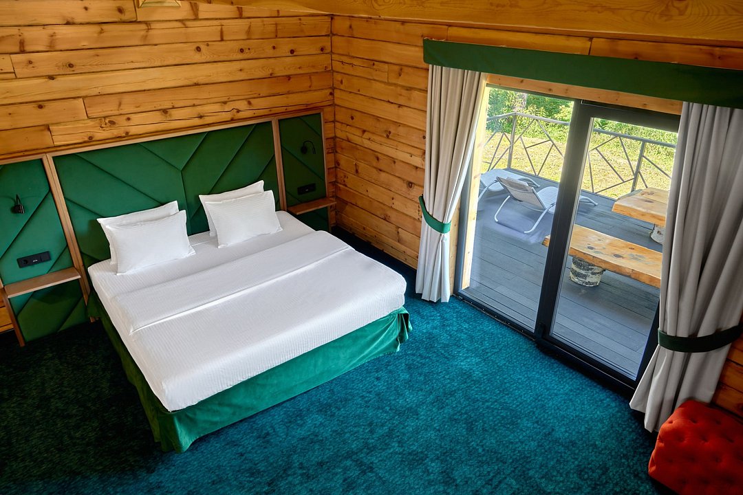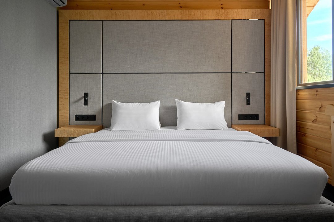 Просторное и стильное шале на первой линии с панорамными окнами подарит живописный вид на парк маралов и горы Алтая. В шале есть все для качественного отдыха и комфортного сна: одна двуспальная кровать с ортопедическим матрасом, невесомое одеяло, климат-контроль, Smart TV, блэкаут шторы, приглушенный теплый свет, чайная зона и современная ванная комната. Натуральные материалы в интерьере создают уютную и теплую атмосферу, а панорамные окна позволяют наблюдать за величественными маралами в любое время суток, погружаясь в единение с природой. Всем гостям предоставляется услуга персонального батлера, который будет на связи в круглосуточном режиме и выполнит любые просьбы. Идеально для тех, кто ценит гармонию природы и комфорт.