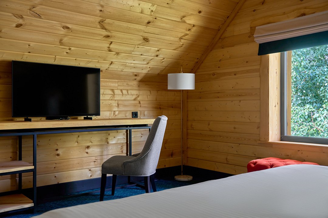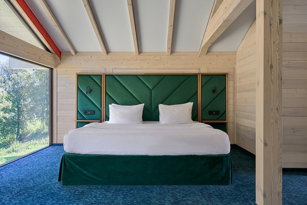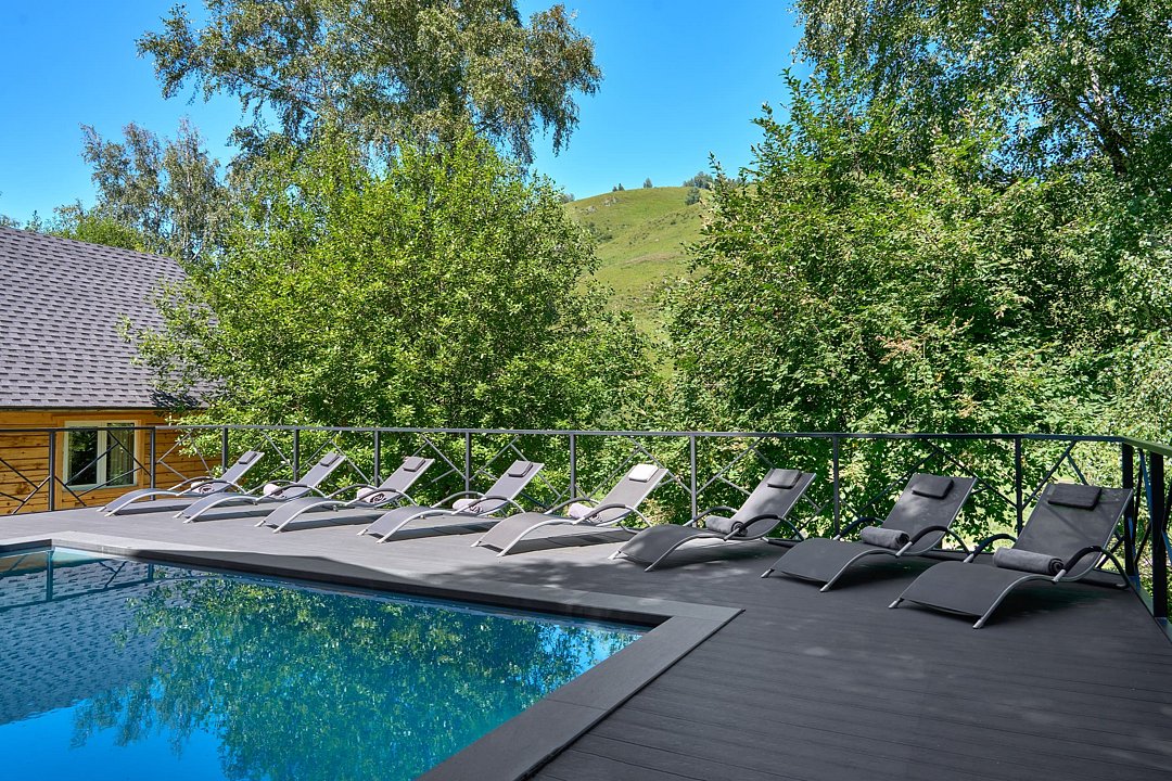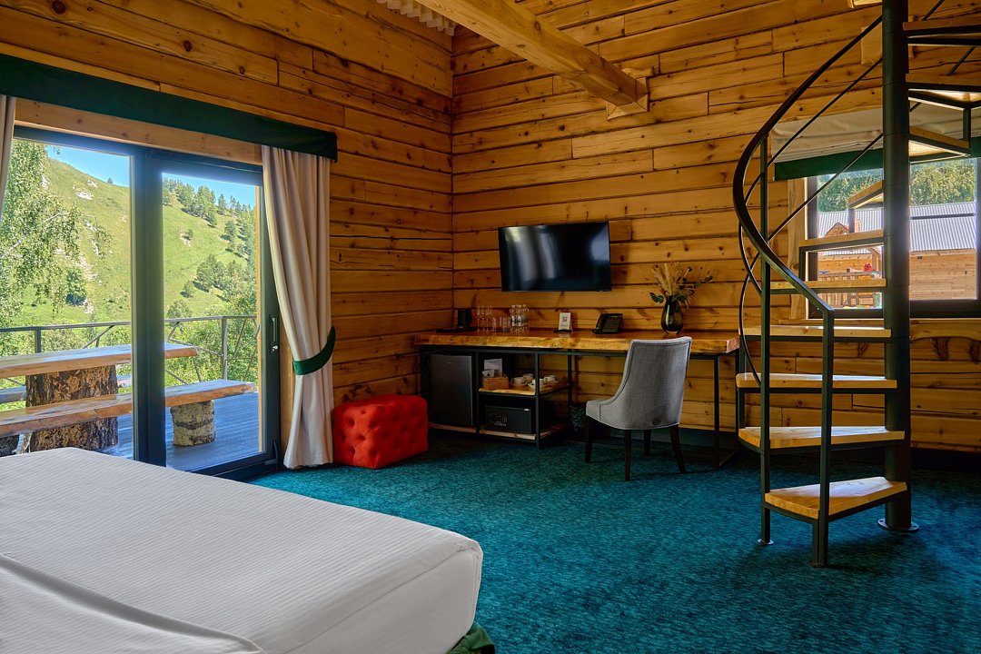 Гостям доступны 26 современных шале от 35 до 90 кв.м., включая виллу-апартаменты с собственным бассейном. Все дома оснащены панорамными окнами с видом на парк маралов у подножия горы Каим. Гостям предоставляется услуга персонального батлера, который будет на связи в круглосуточном режиме и выполнит любые просьбы.