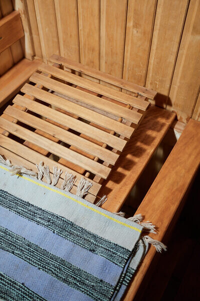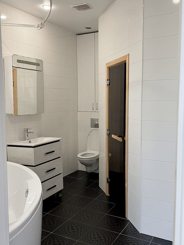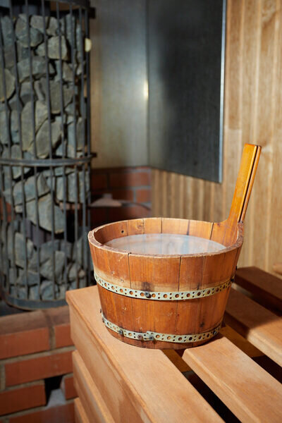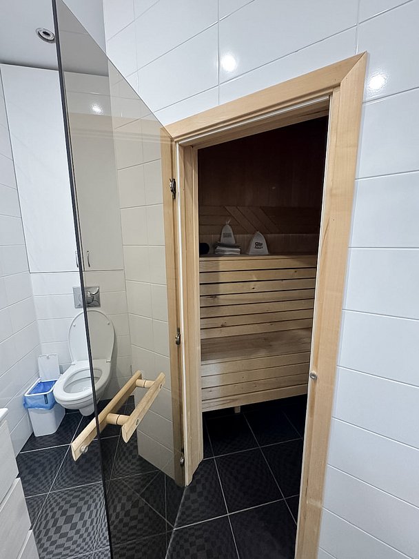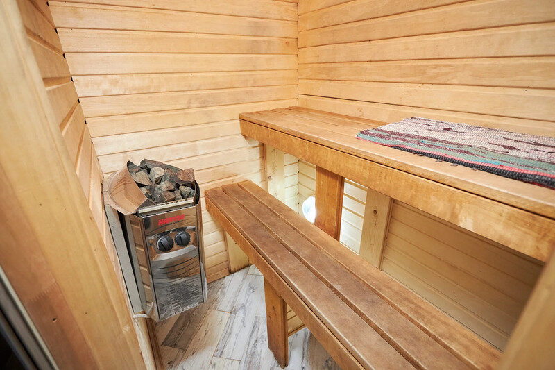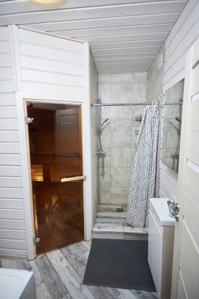 Большие дома оборудованы саунами. Удобные и просторные сауны, где вы можете сами регулировать температуру. Так же есть все необходимое для сауны — веники, шапочки, полотенца.