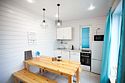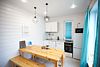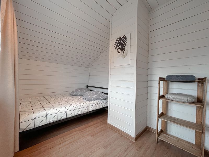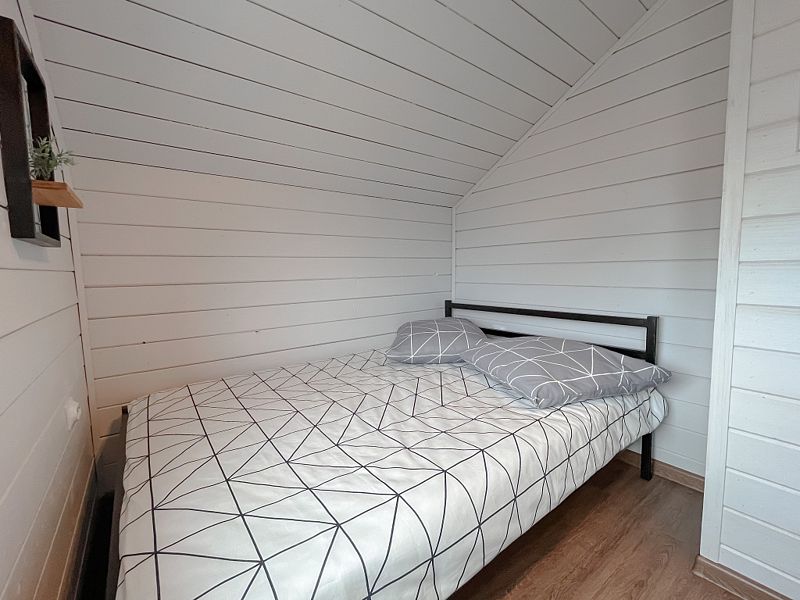 В доме уютная гостиная (с раскладным 2-х спальным диваном) с телевизором, совмещённая с кухней; санузел. Кухня полностью оснащена необходимой техникой для приготовления пищи (варочная поверхность, холодильник, микроволновая печь, чайник). Изолированная спальня с 2-х спальной кроватью.