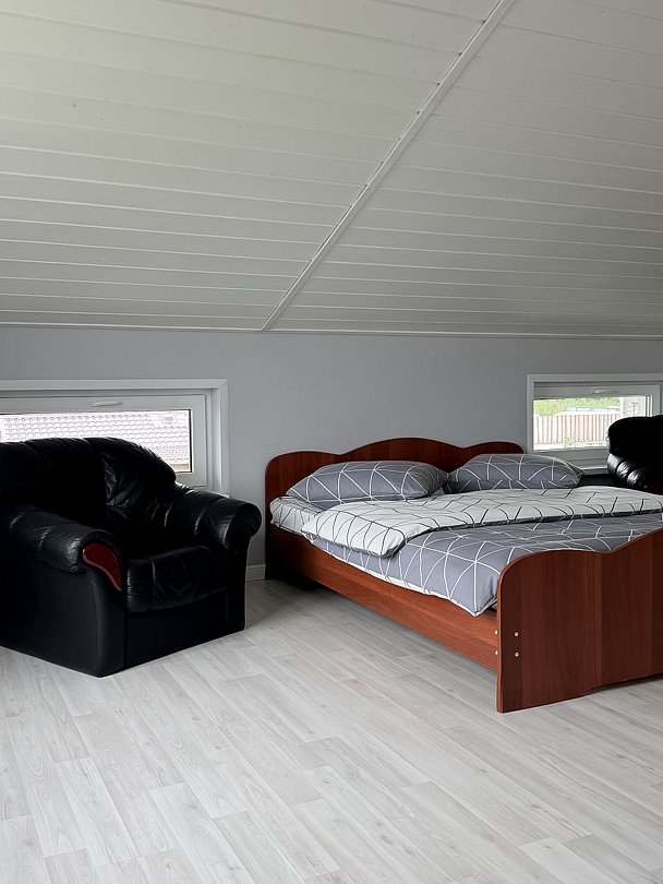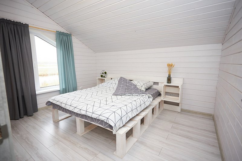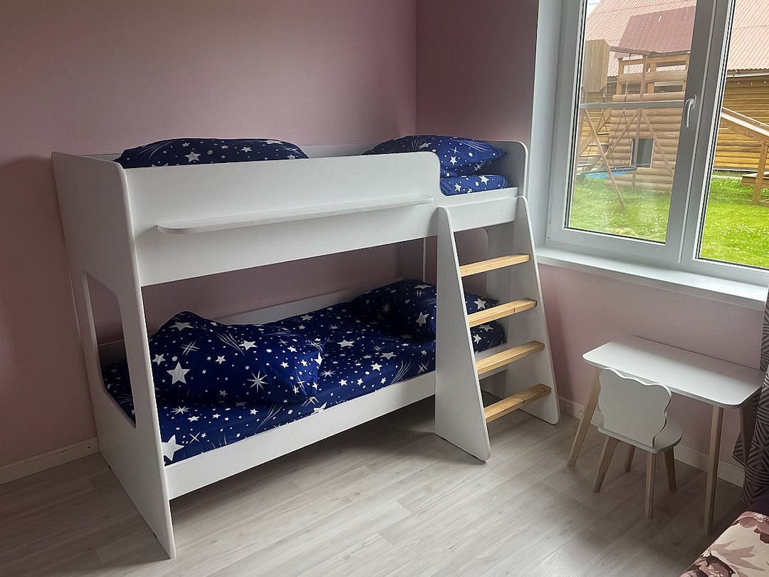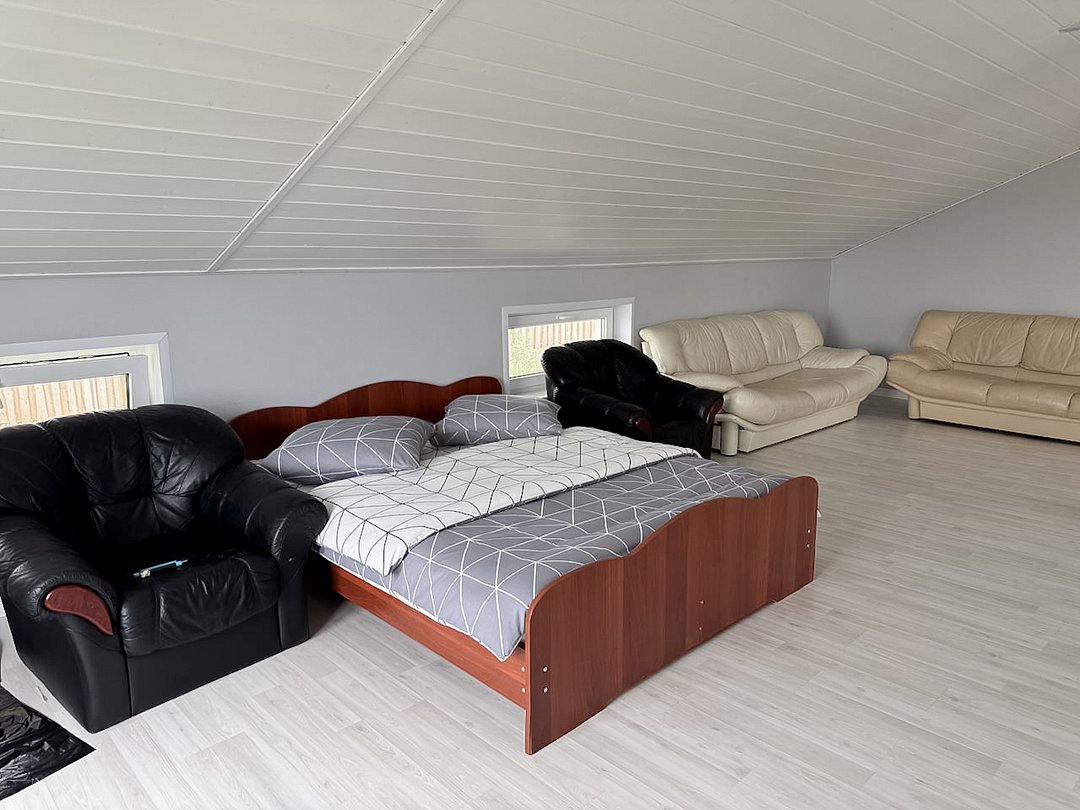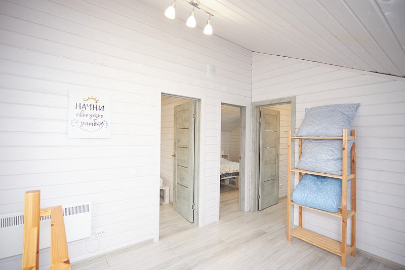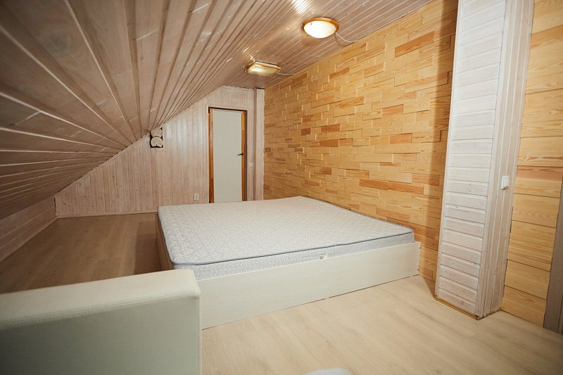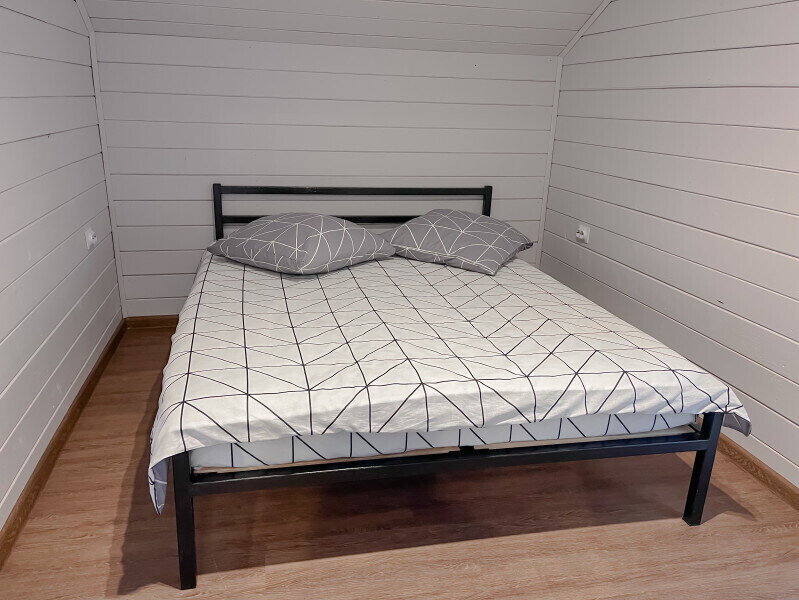 Две двуспальные кровати, четыре диван-кровати, одна кровать king-size, одна двухъярусная кроватьКоттедж с баней на дровах на малой территории