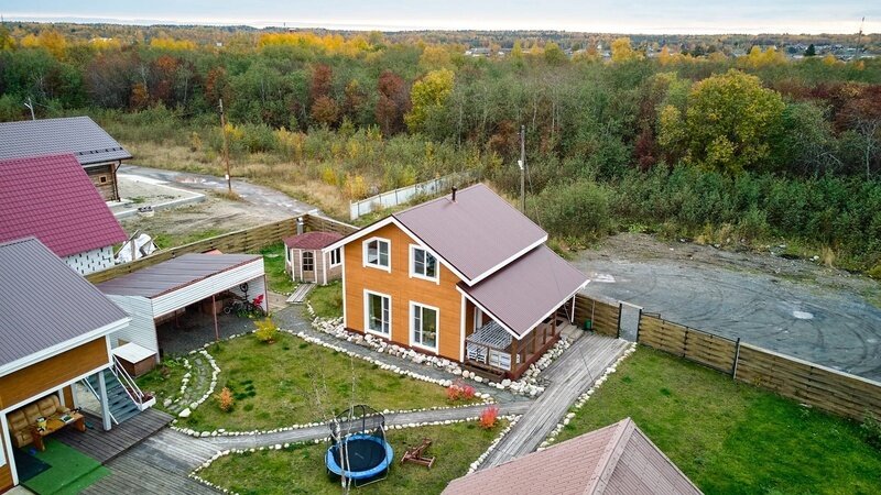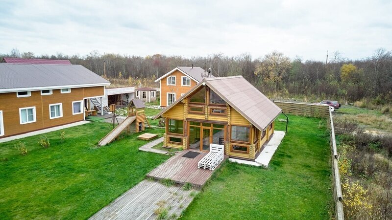 На большой территории расположено 3 одинаковых уютных смарт-дома.