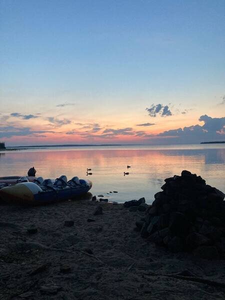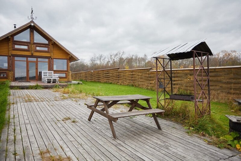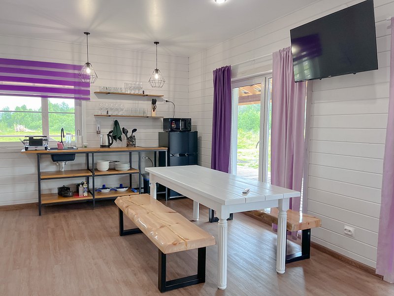 На территории есть баня, мангальная зона, детская площадка, банный чан и беседка, отдыхая в которой можно любоваться невероятными карельскими закатами.