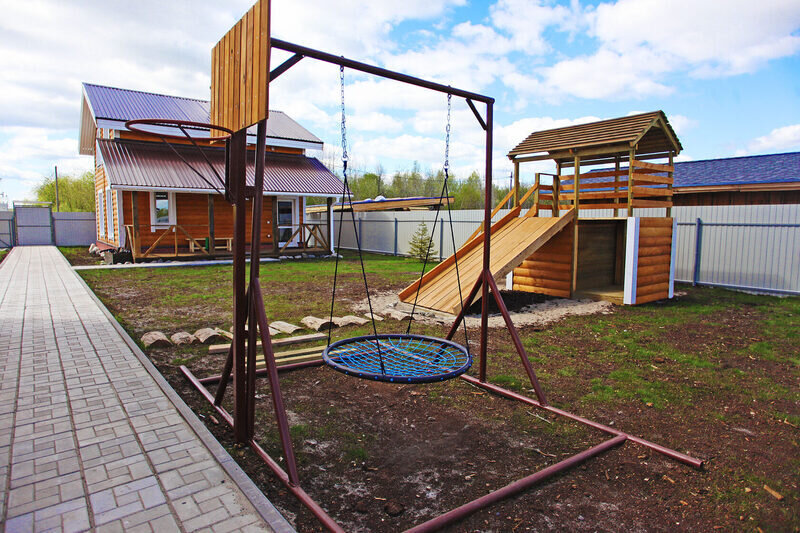 База отдыха оборудована тремя детскими площадками. Две из них находятся на большой территории и одна на малой. На площадках есть горки, качели, батуты — все, что нужно детям для весёлого отдыха! Детские площадки хорошо видно из окон домиков, так что дети всегда будут на виду у родителей.