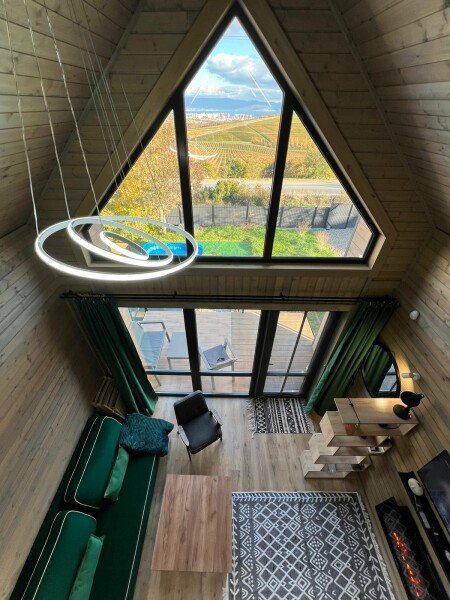 Комфортабельный дом с великолепным панорамным видом на виноградники, горы и море полностью укомплектован всем необходимым для вашего полноценного отдыха. Коттедж включает кухню-гостиную, оснащенную бытовой техникой и набором посуды, уютные спальные места, современный санузел с душем и жаркую сауну с красивым видом из окна.