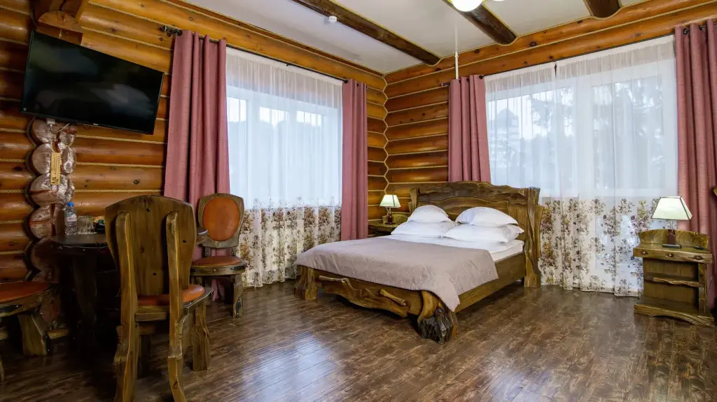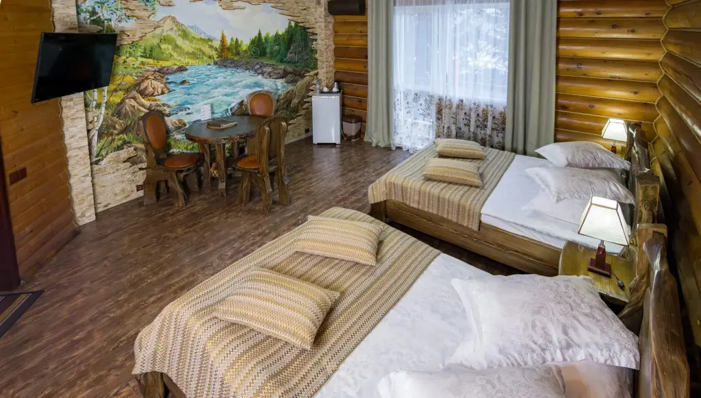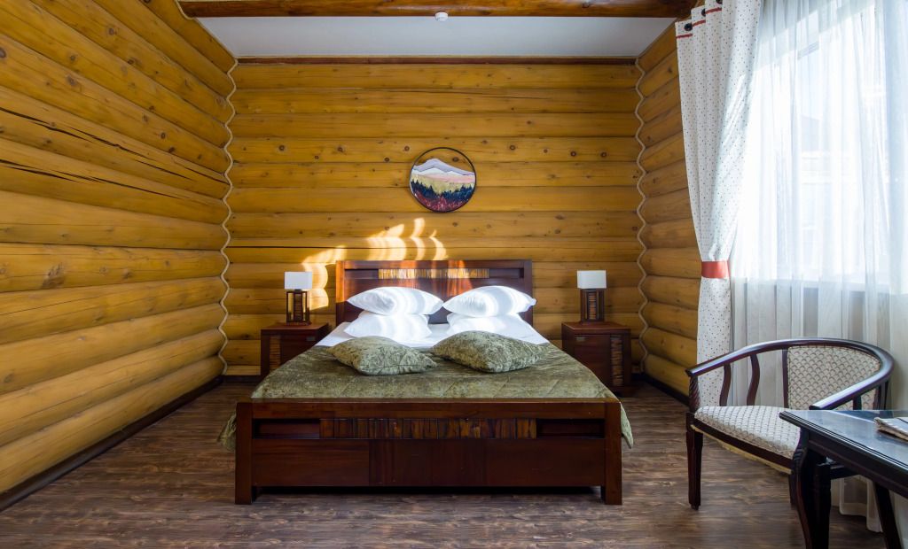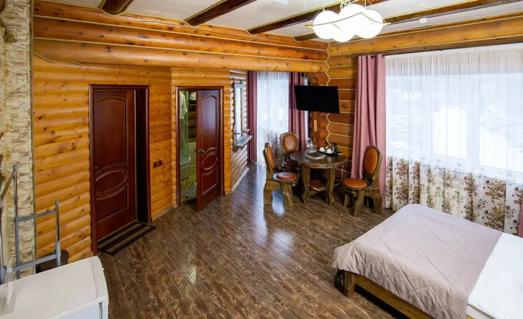 Единственный отель в курортной зоне выполнен из кедра. Уютная терраса для отдыха на свежем воздухе и беседки для барбекю послужат прекрасным отдыхом для вашей компании. На уютном пляже с шезлонгами можно насладиться солнечными ваннами. А изюминкой отеля является ресторан в котором проводятся гастрономические вечера с выступлением артистов.