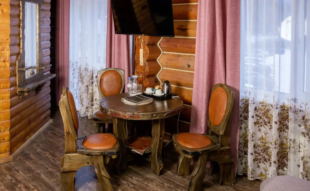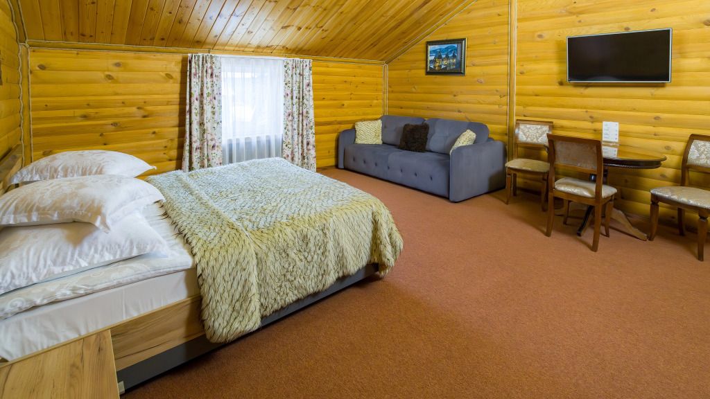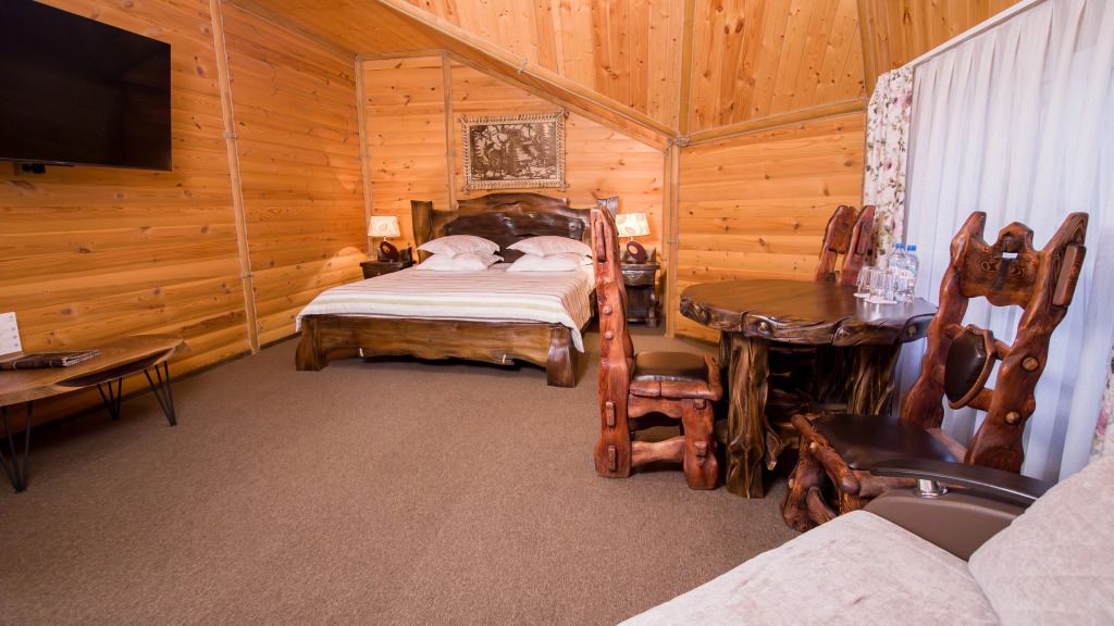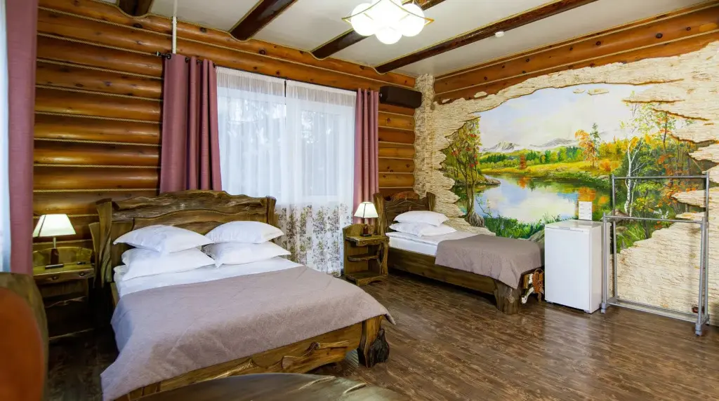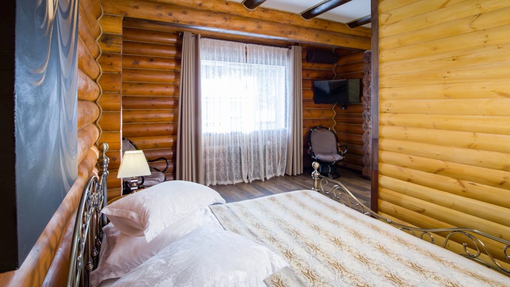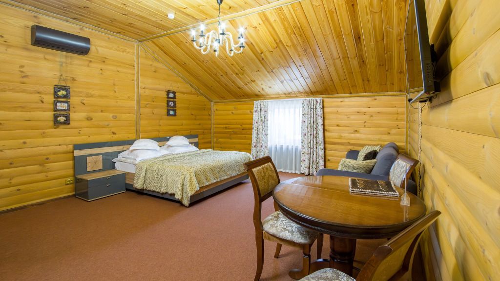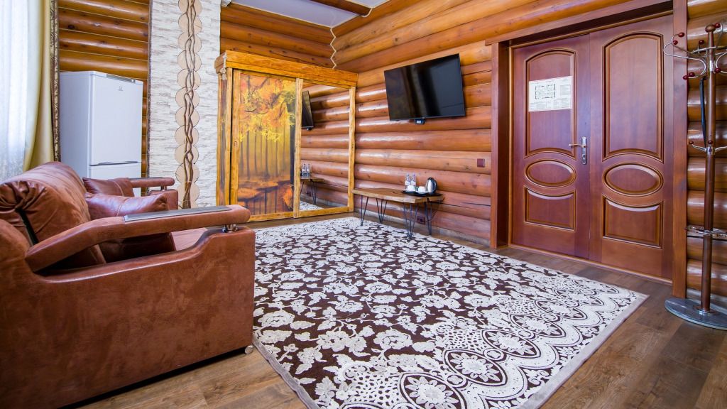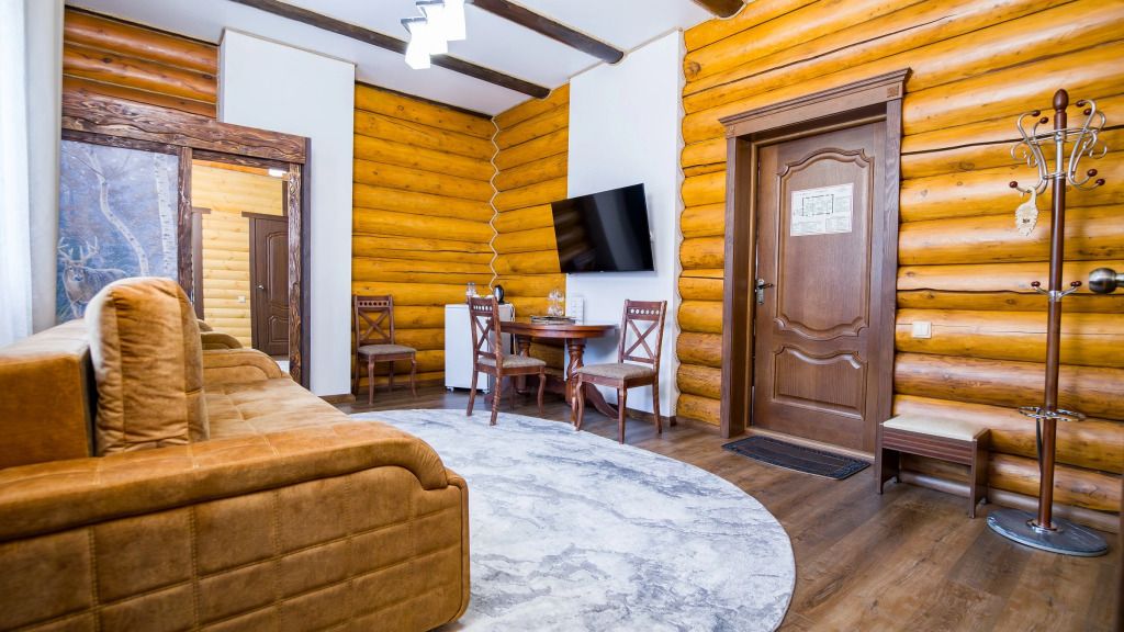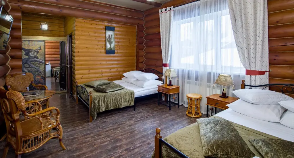 Короткий отпуск с друзьямиОтличный отель из сруба в хорошем местеПрекрасное место расположения, прекрасная хозяйка. Все в этом месте достойно. Территория маленькая, но ухоженная. На всех этажах можно встретить чучел абсолютно разных животных и птиц. Хорошие завтраки, качественные и мягкие тапочки и халаты в номерах.
