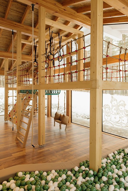 Для размещения гостей — 36 стильных шале категории люкс площадью от 38 до 62 кв.м., включая 12 шале с возможностью объединения для семейного отдыха. Все строения выполнены в современном эко-стиле, гармонично интегрированном в первозданную природу. В интерьерах — натуральное дерево, экологически чистые материалы, камень и панорамные окна с потрясающими видами.