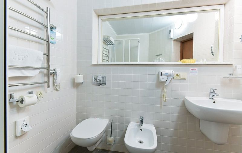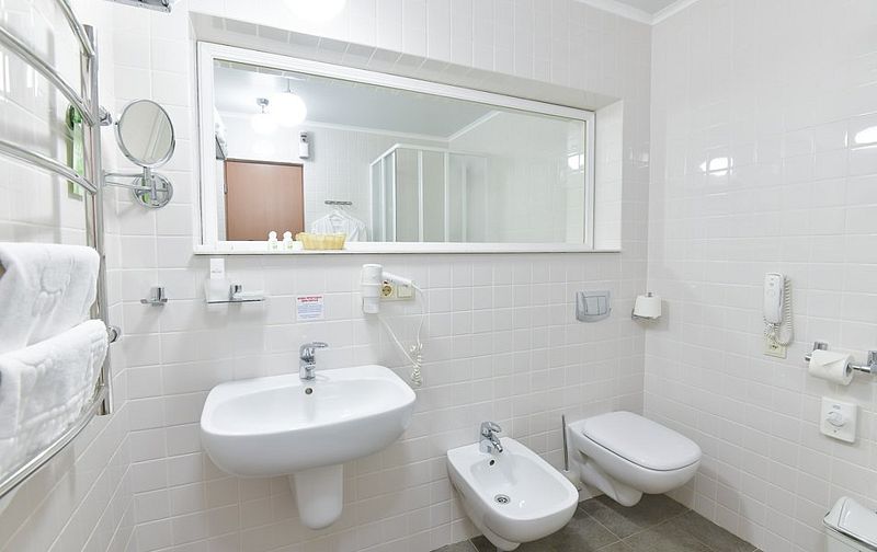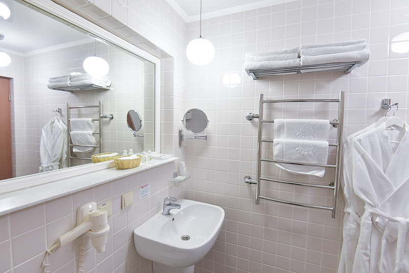 27 кв.м., одна/две кровати, стол, стулья, шкаф-купе, телевизор, холодильник, телефон, сейф, гладильная доска, утюг, санузел, душевая кабина, биде, фен.