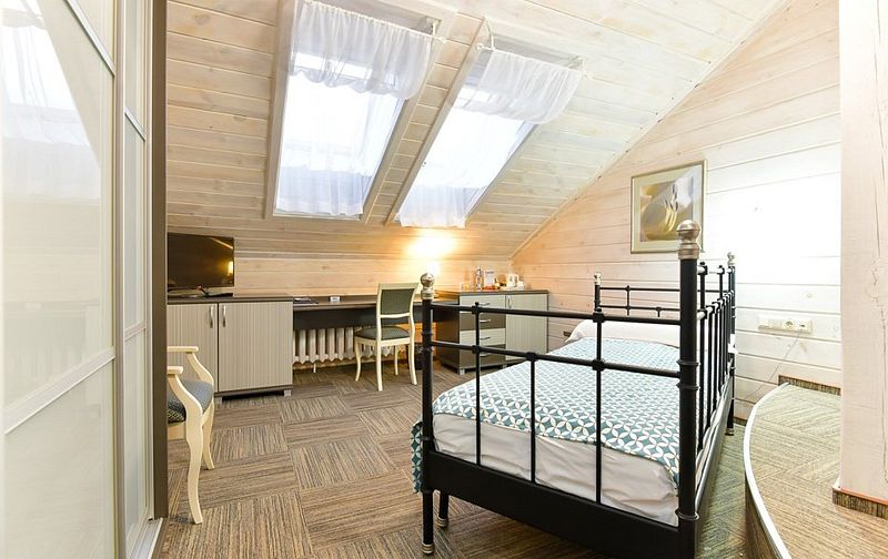 Классический дизайн интерьера, гарнитурная мебель и много дневного света — вот те приятные достоинства, которые так привлекают гостей. Две односпальные кровати, которые по желанию гостей трансформируются в одну двуспальную, оснащены ортопедическими матрасами.