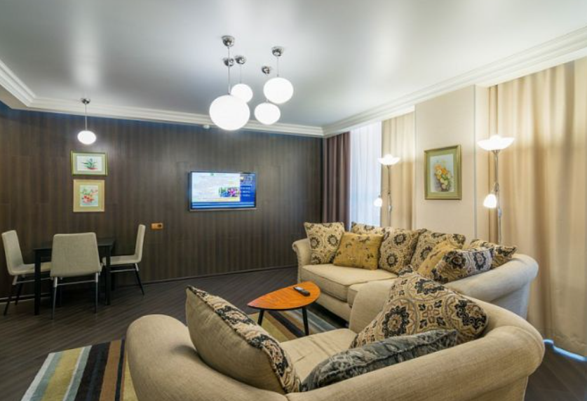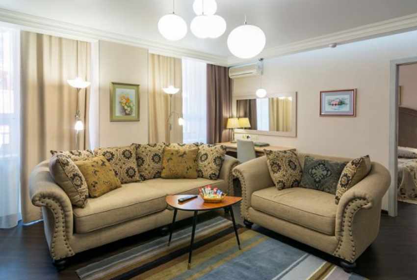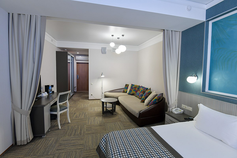 Джуниор Сюит — однокомнатный номер площадью от 31 кв. метров, в котором пространство удачно сочетает спальную, рабочую и гостевую зоны.