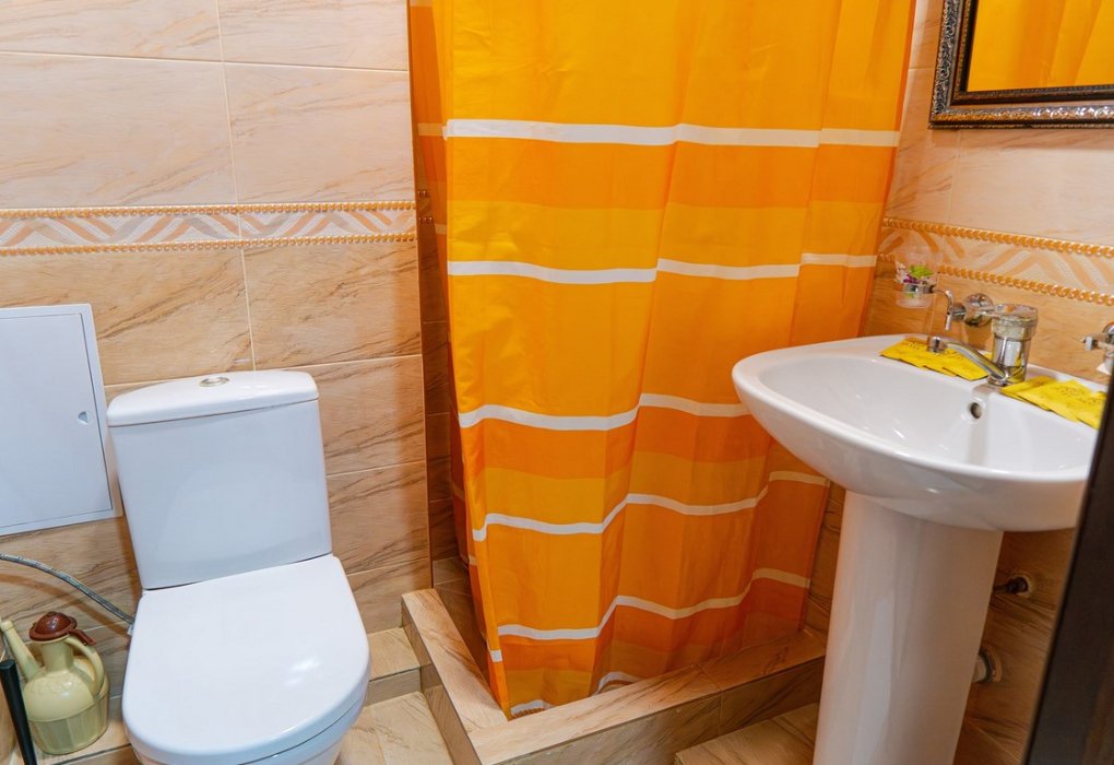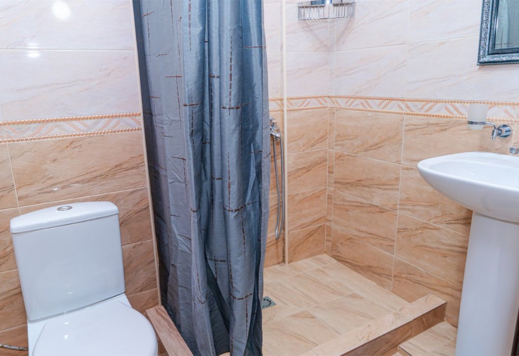 До моря очень близко, переодевали, душ на пляже есть ,но напор слабый, туалетов к сожалению нет.