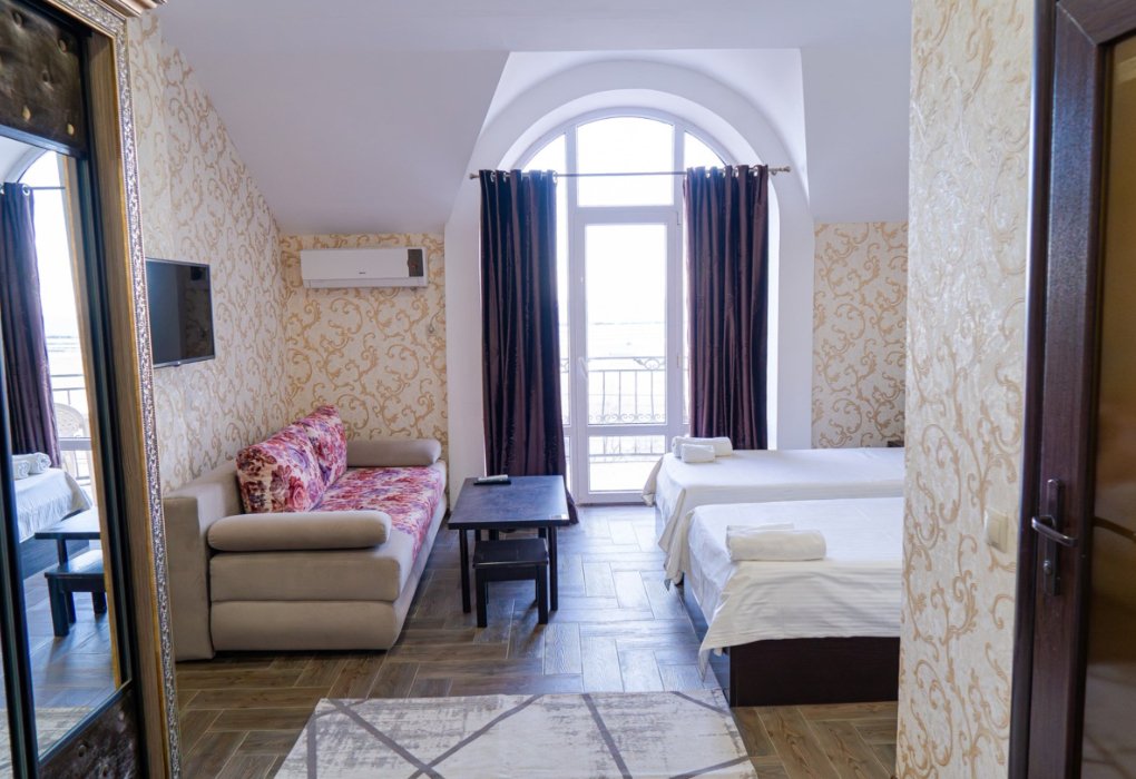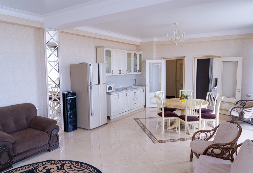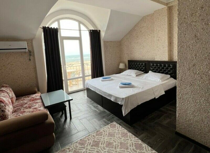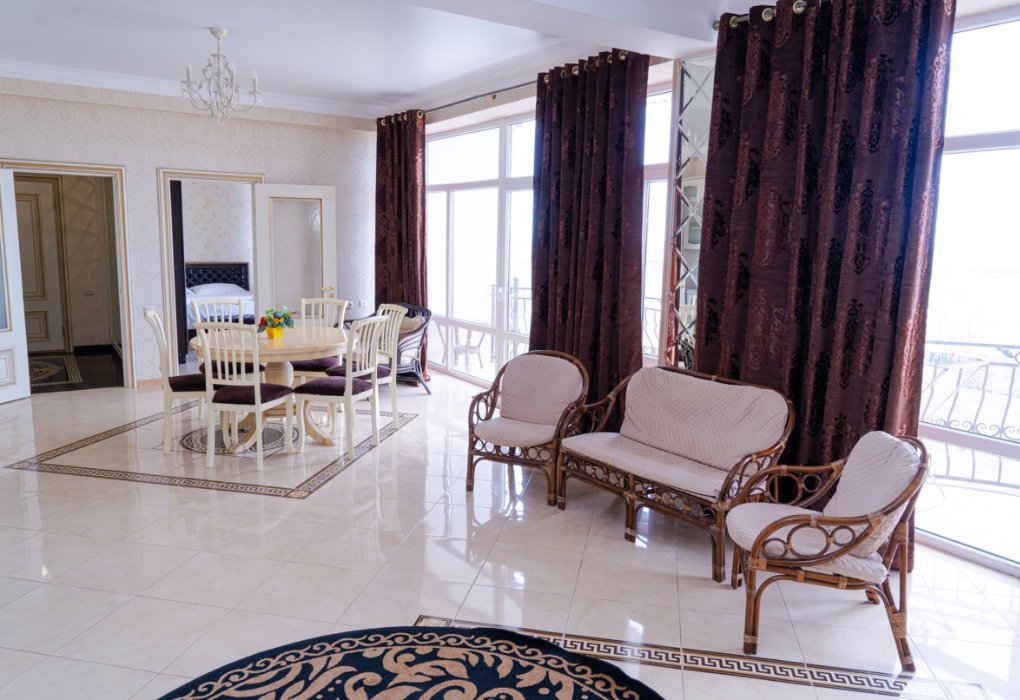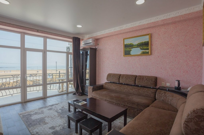 «Океан» расположен на берегу Каспийского моря, а песчаный пляж полностью обустроен для комфортного отдыха, с раздевалками, навесами и лежаками.