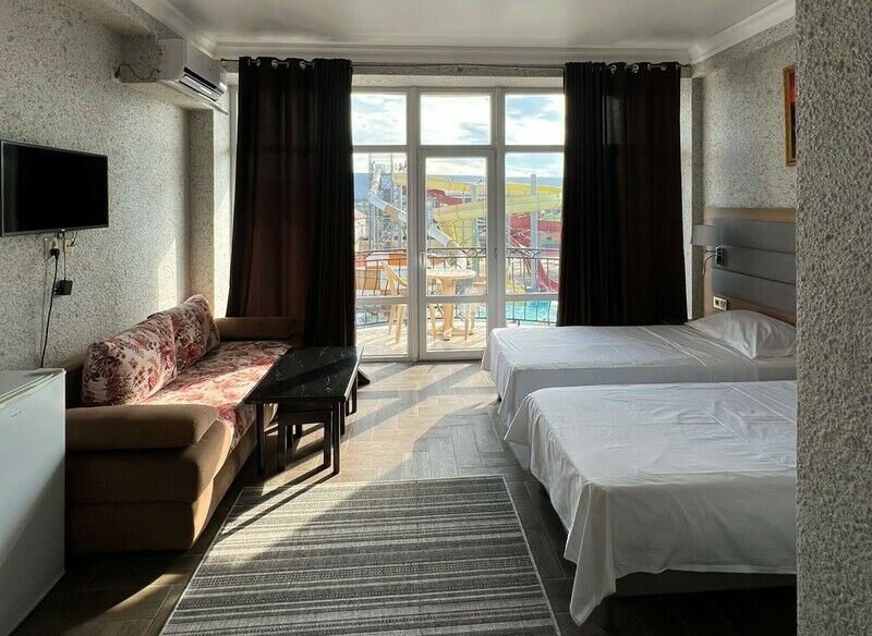 Путешествие с паройОтель между морем и аквапаркомОтель в мае 2024 года расширялся -поэтому везде пахло краской. Номера хорошие. Ванная, совмещенная с туалетом, очень маленькая, не хватает хоть какой-нибудь полочки.