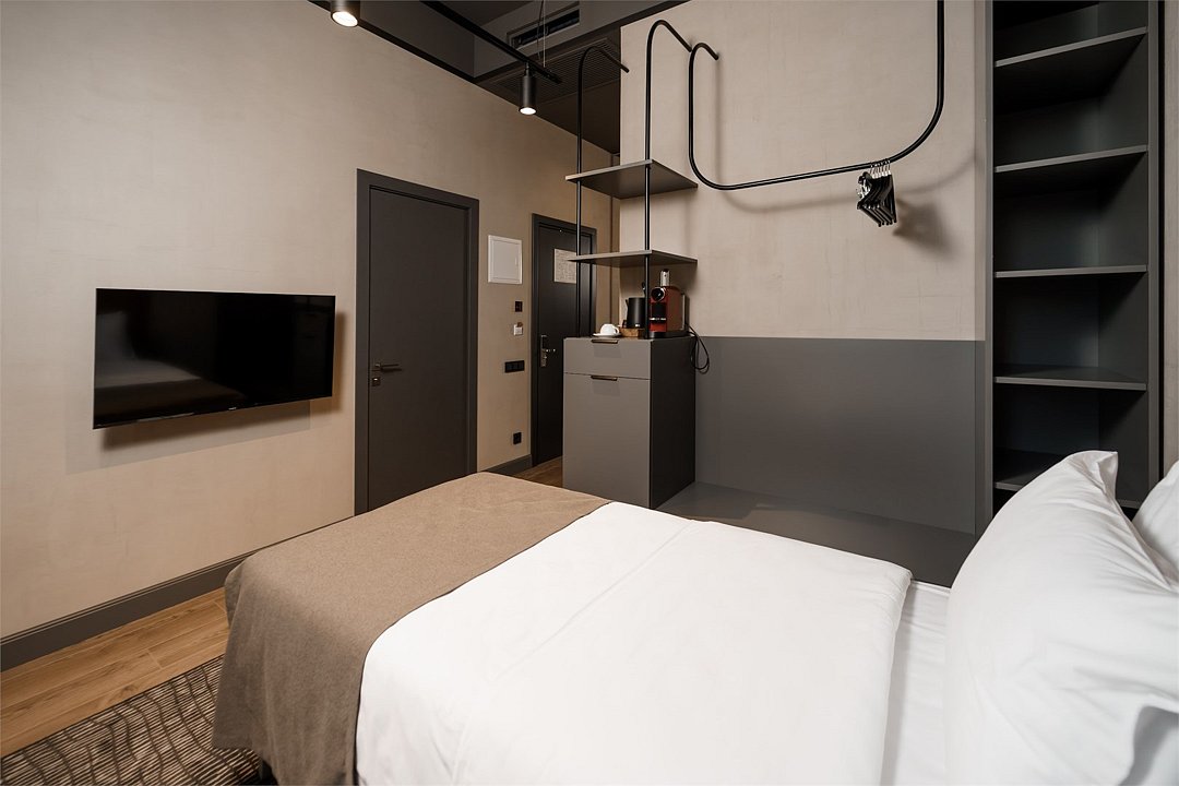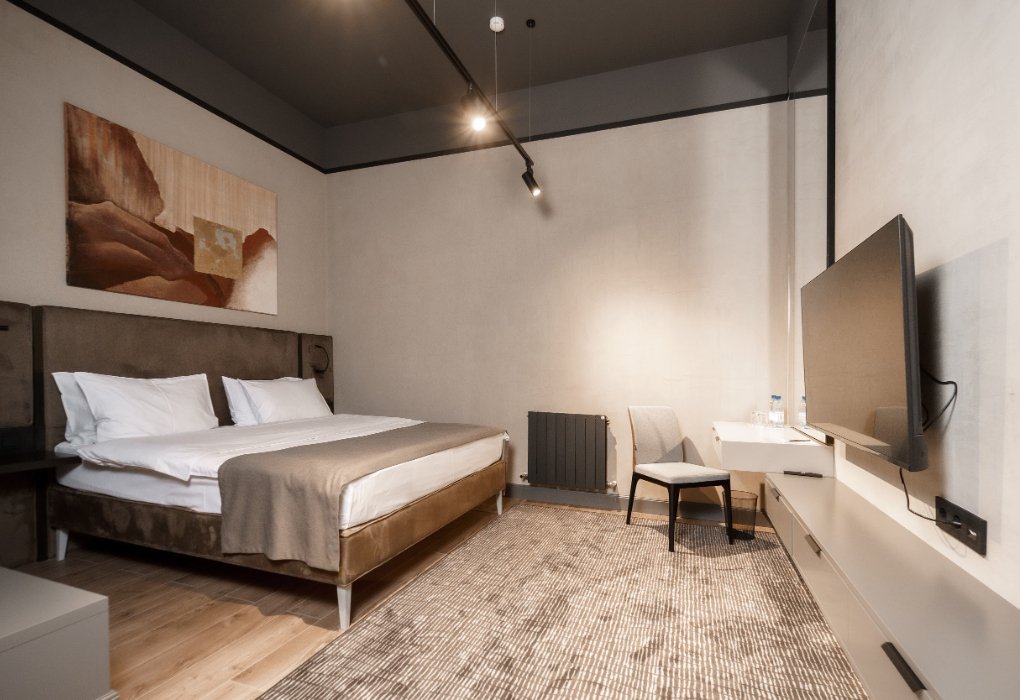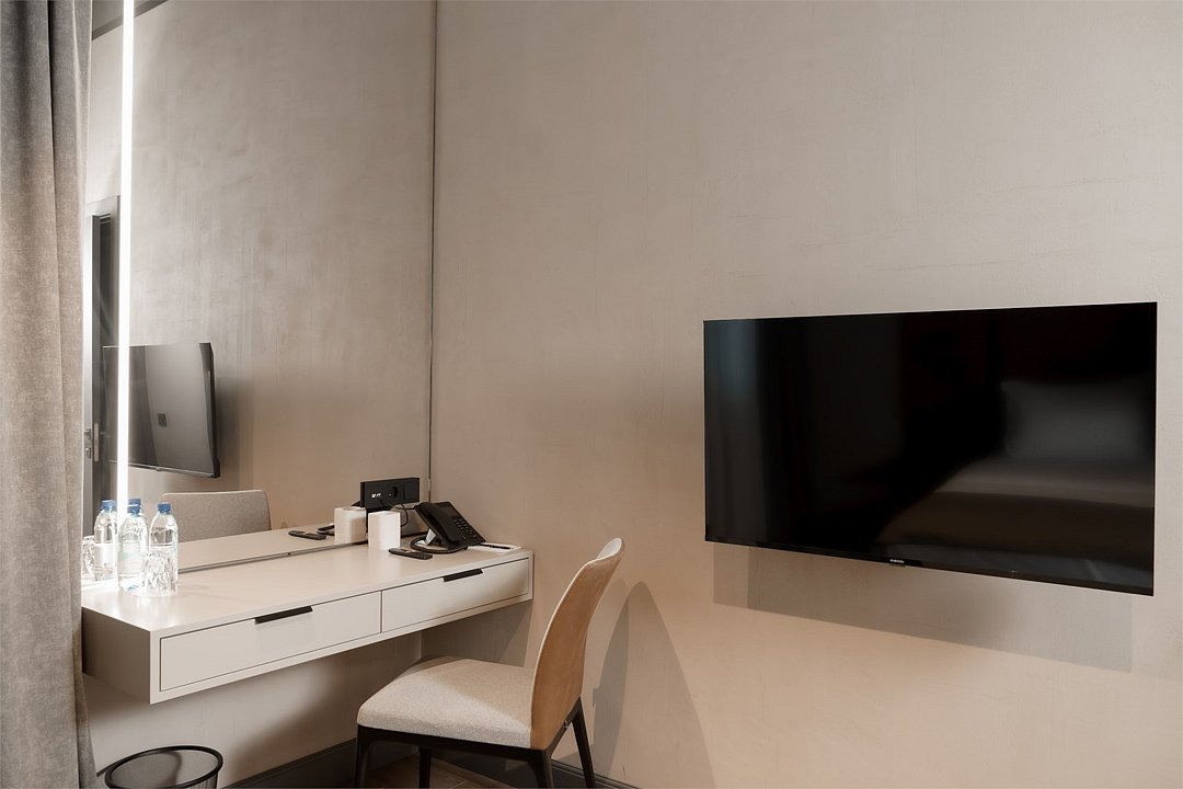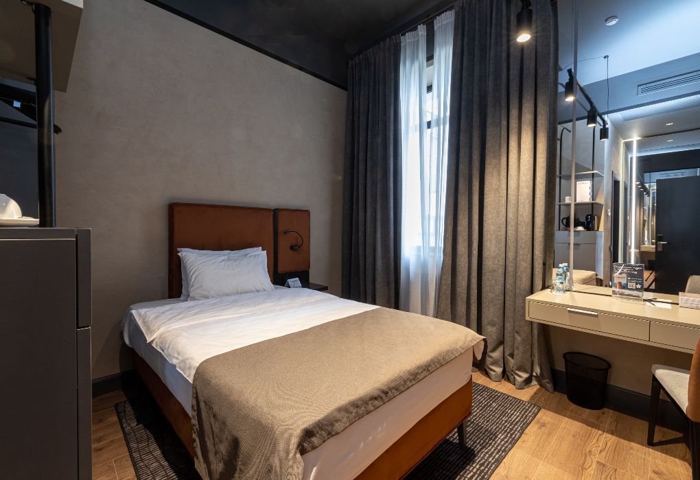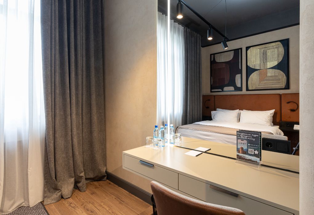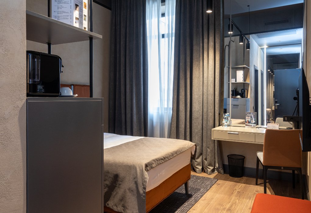 Одноместный Стандарт — идеальный выбор для тех, кто ищет спокойствие и комфорт после насыщенного дня. Интерьер оформлен в современном стиле с использованием теплых оттенков и натуральных материалов.