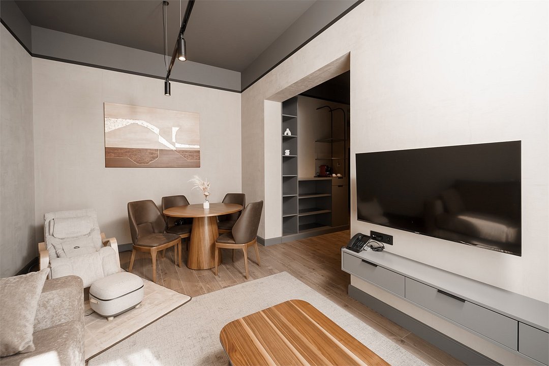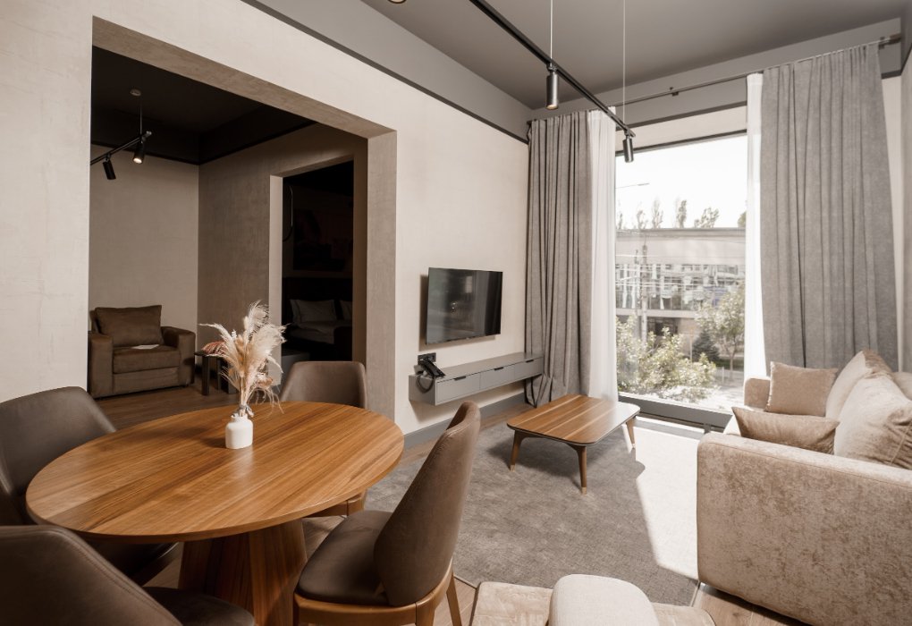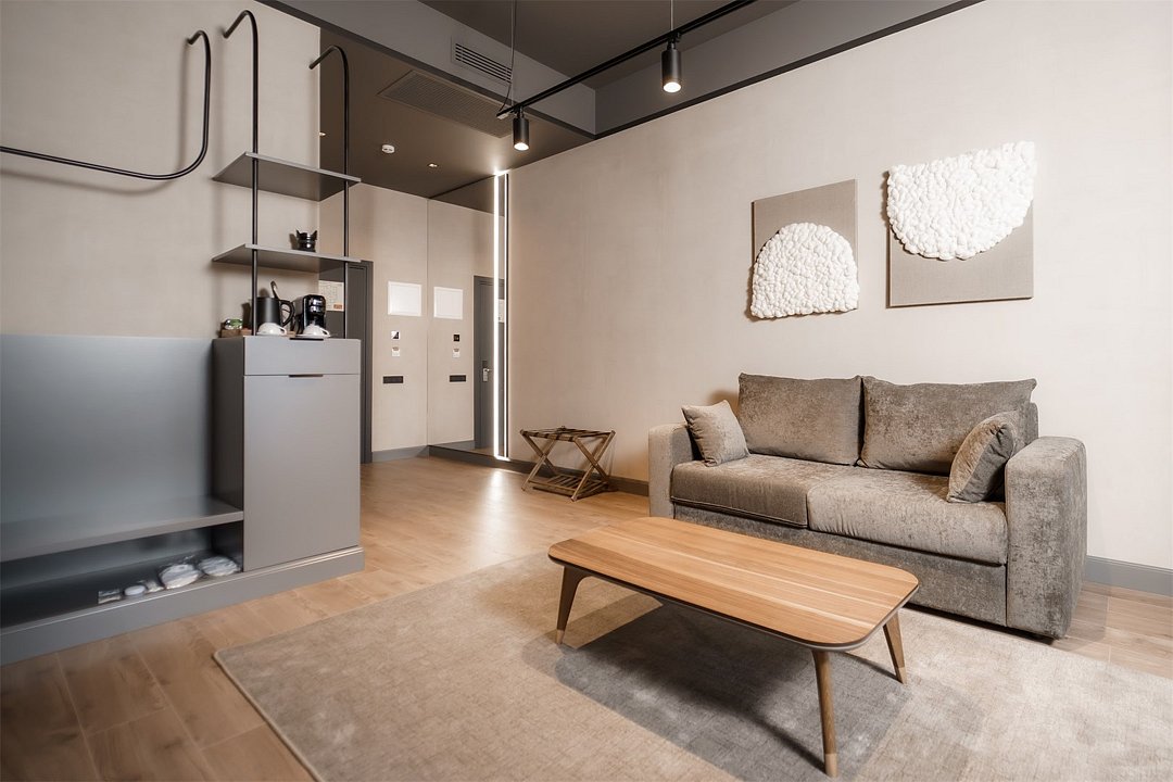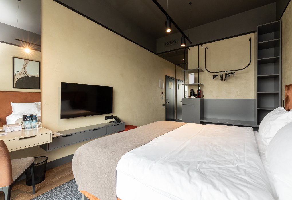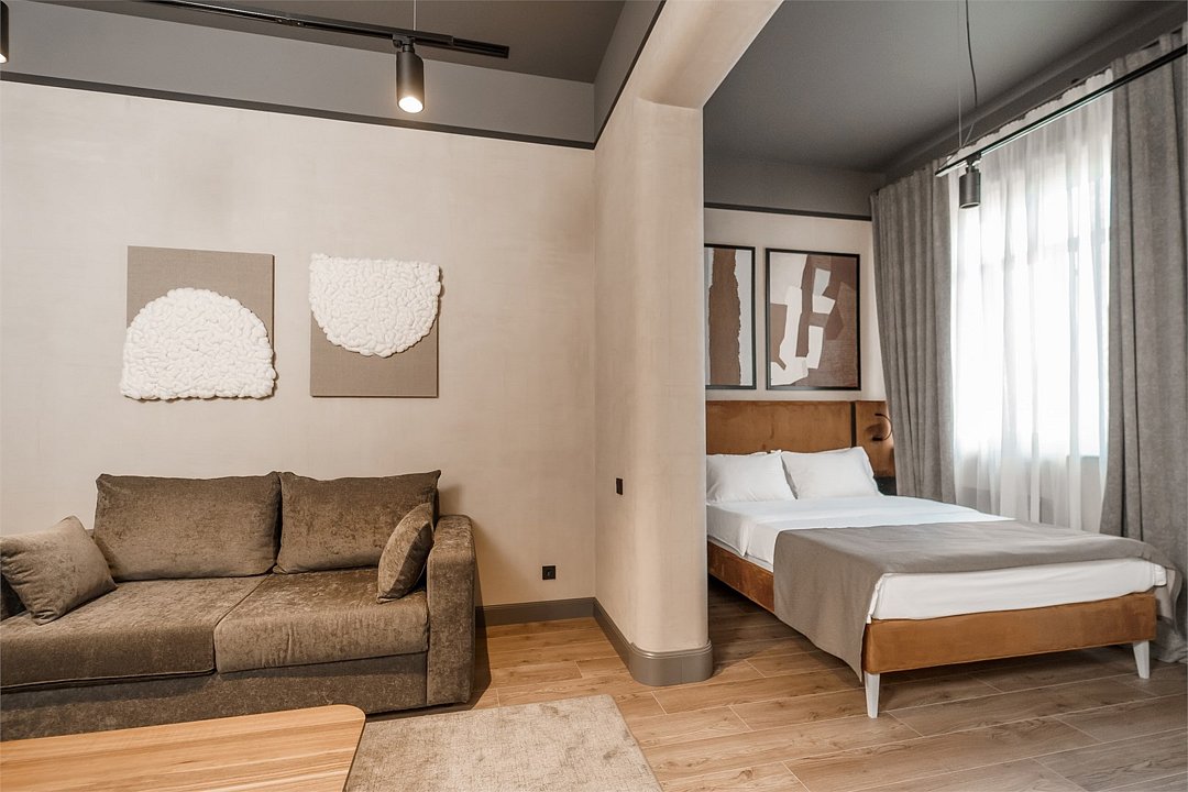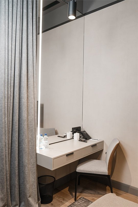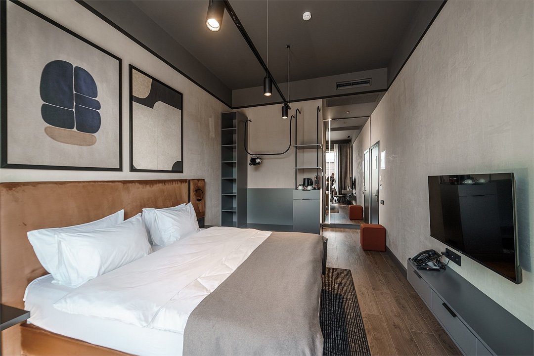 Одноместный Стандарт — идеальный выбор для тех, кто ищет спокойствие и комфорт после насыщенного дня. Интерьер оформлен в современном стиле с использованием теплых оттенков и натуральных материалов.