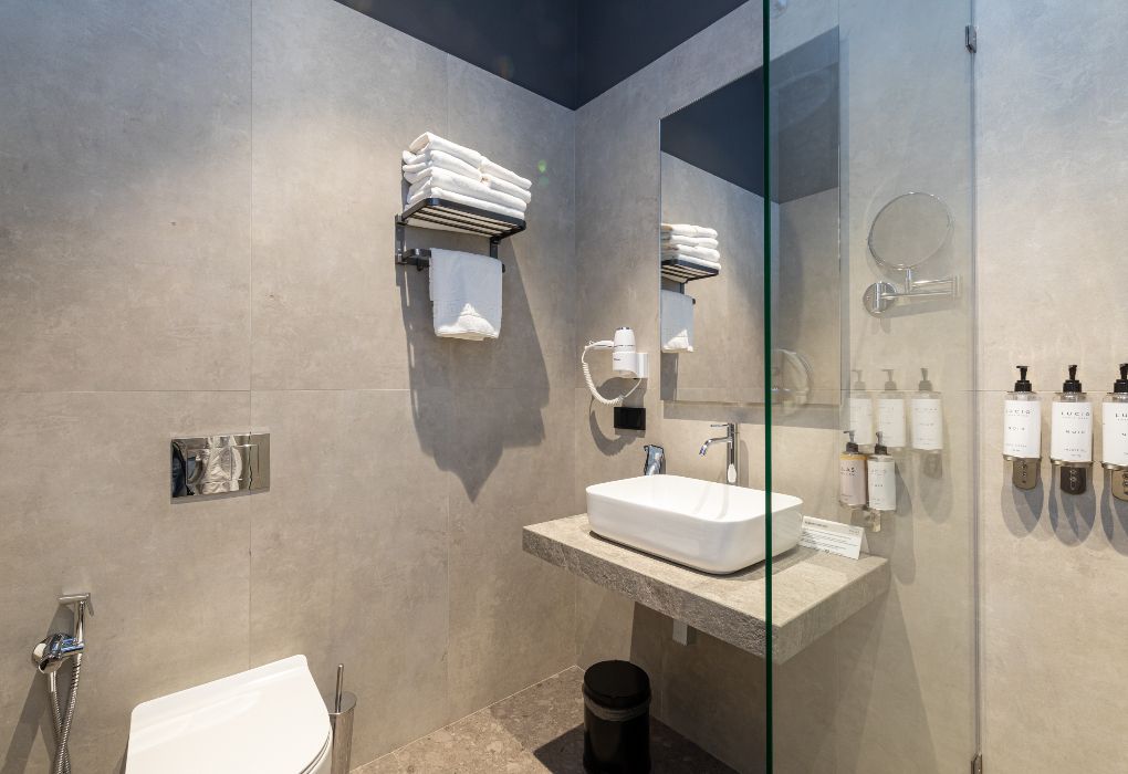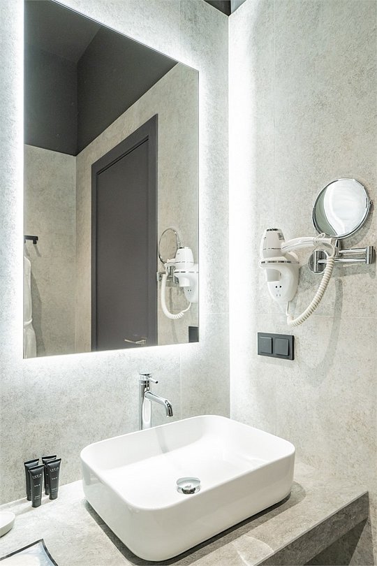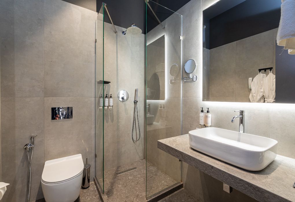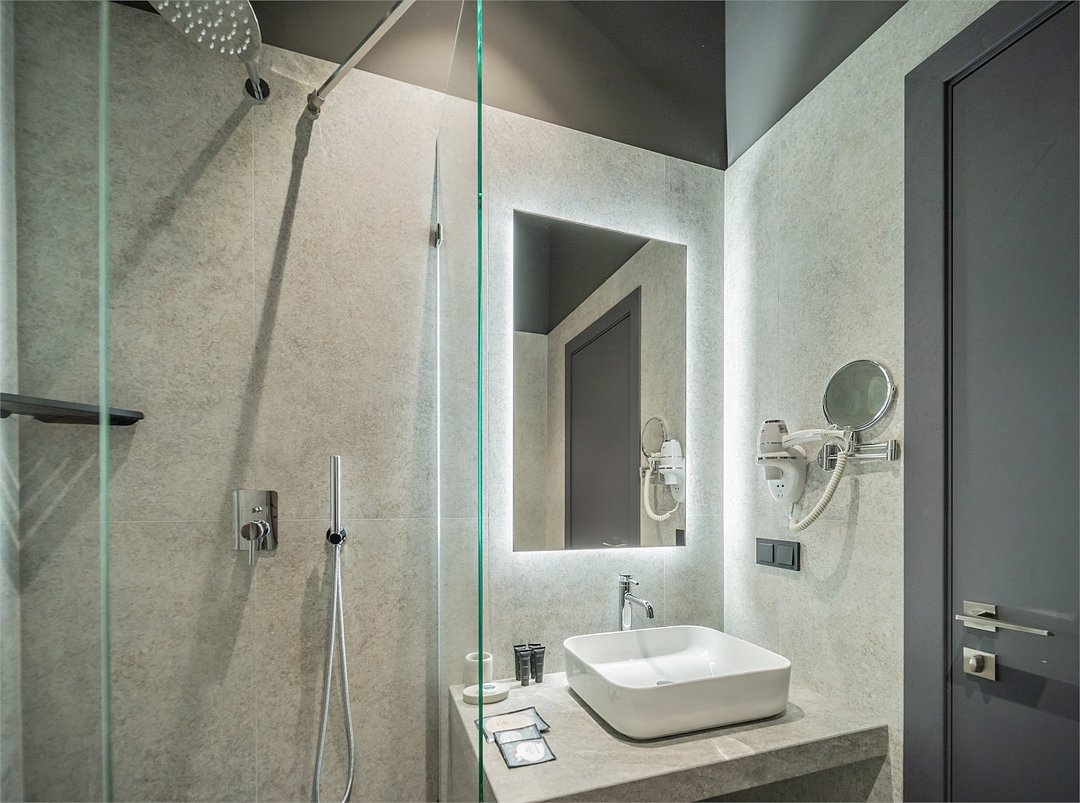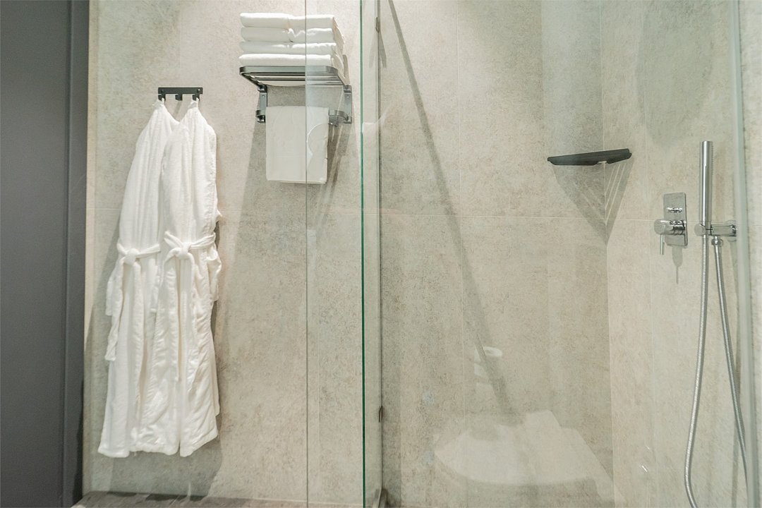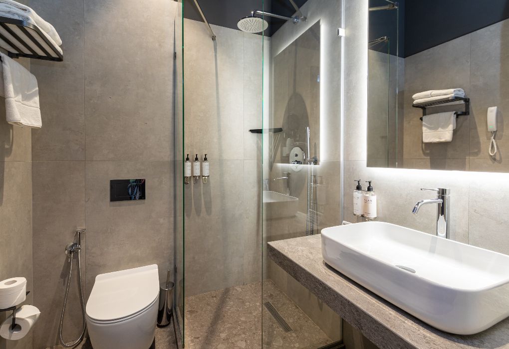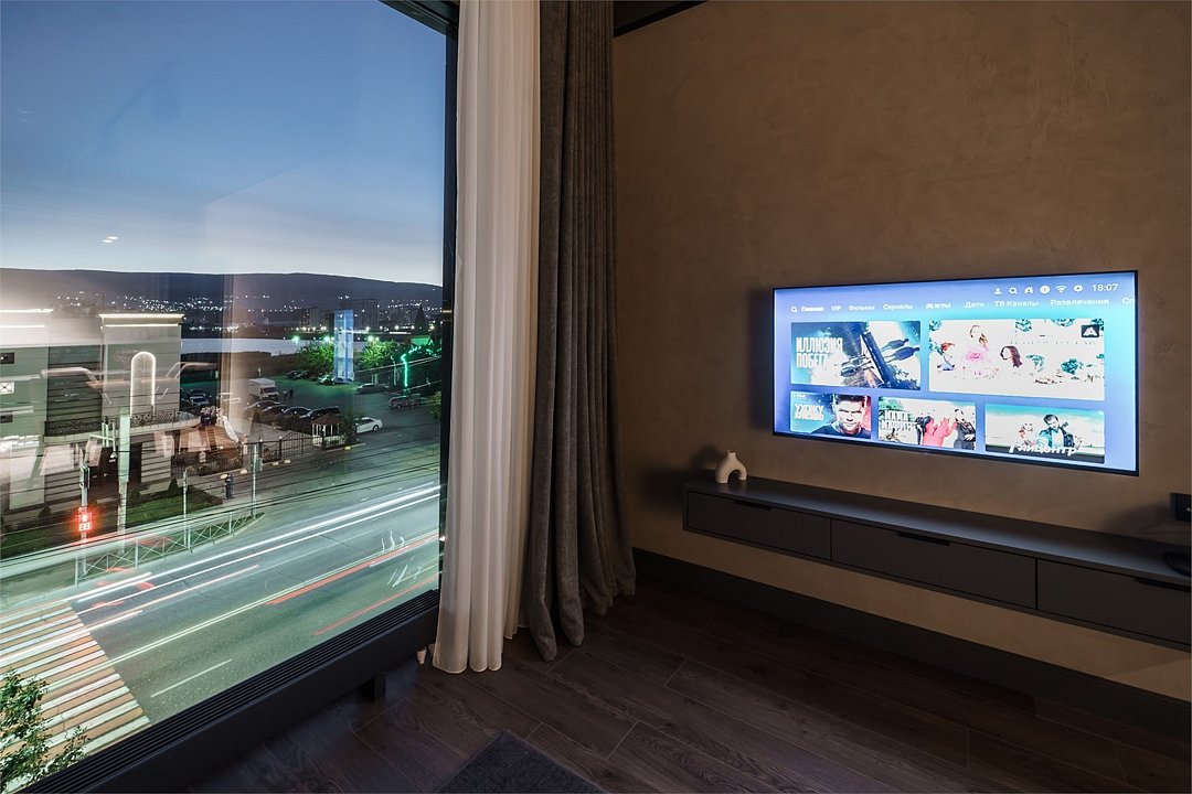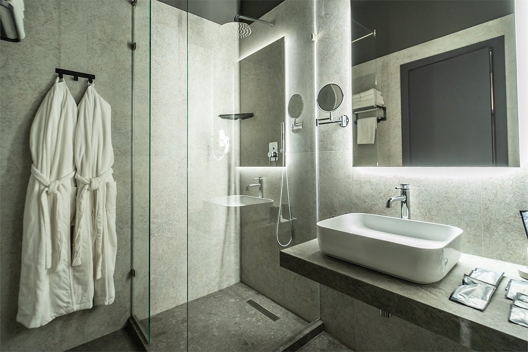 Кондиционер для создания идеального микроклимата, телевизор с системой Android TV, стильная ванная комната с душевой кабиной, фен и набор косметических принадлежностей (шампунь, гель для душа, мыло, также по запросу предоставляются зубной, бритвенный, косметический наборы), мягкие халаты и тапочки.
