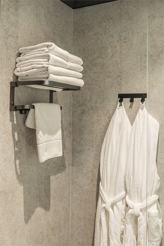 Сейф для хранения ценных вещей, кондиционер для создания идеального микроклимата, телевизор с системой Android TV, стильная ванная комната с душевой кабиной, фен и набор косметических принадлежностей (шампунь, гель для душа, мыло, также по запросу предоставляются зубной, бритвенный, косметический наборы), мягкие халаты и тапочки.
