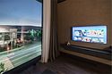 Интерьер выполнен в теплых бежево-коричневых тонах, создающих атмосферу уюта и гармонии. Окна номера выходят во внутренний дворик, что обеспечивает тишину и уединение. Номер оснащен специально оборудованной ванной комнатой и санузлом, а также более широкими дверными проемами для удобства передвижения.