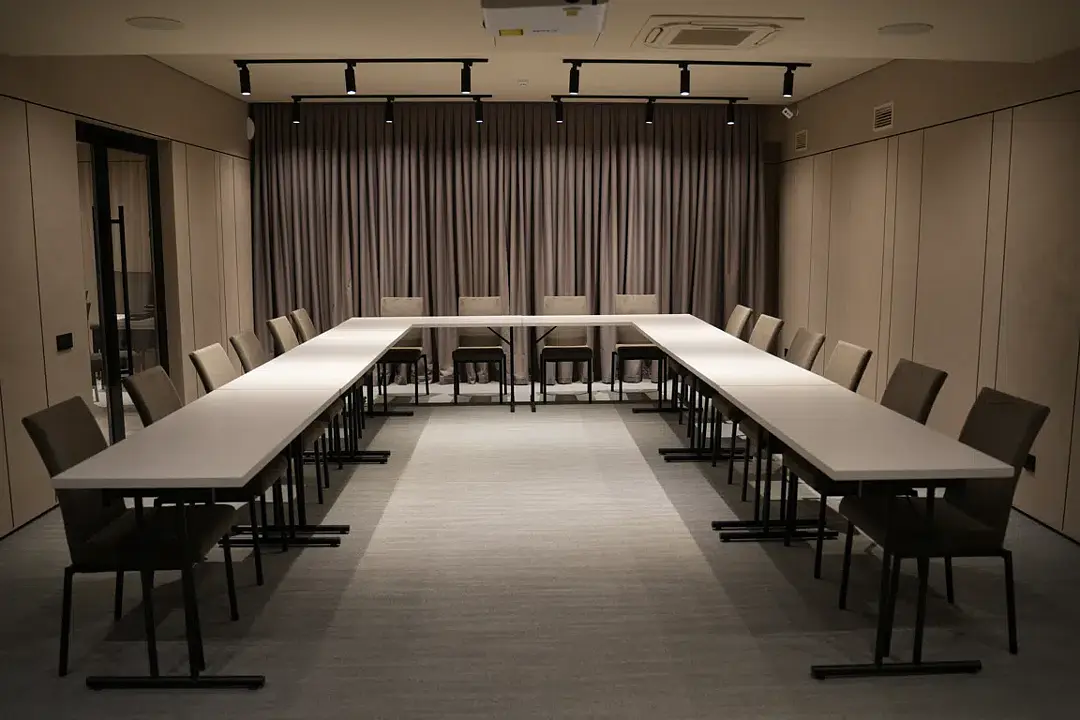 Конференц-зал «Расул Гамзатов» — это идеальное пространство для проведения как деловых встреч, так и уютных банкетов. Площадь сорока семи квадратных метров позволяет разместить до шестидесяти человек, а отдельный вход обеспечивает комфорт и приватность.