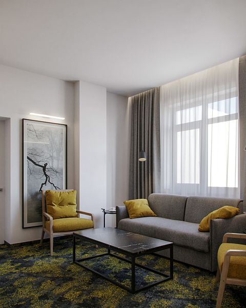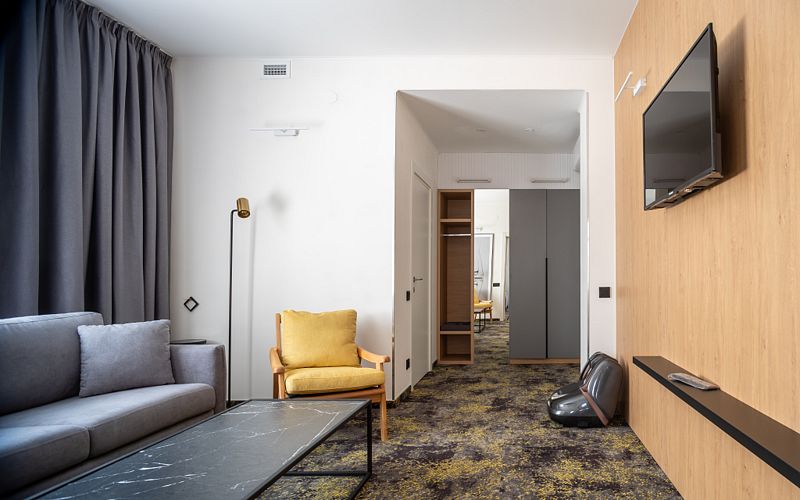 Просторный двухкомнатный номер с двумя двуспальными кроватями. В номере могут проживать до 4 гостей. К услугам гостей: интернет Wi-Fi, Телевизор, телефон, индивидуальная система кондиционирования, кофемашина Nespresso, мини-бар, фен, халат, расширенный набор гигиенических принадлежностей премиум-класса.Услуги и удобства