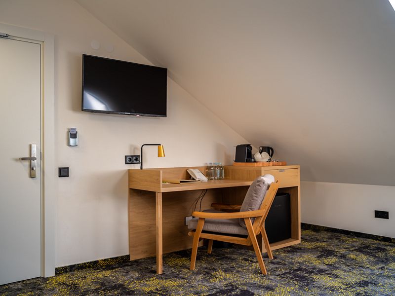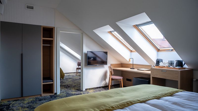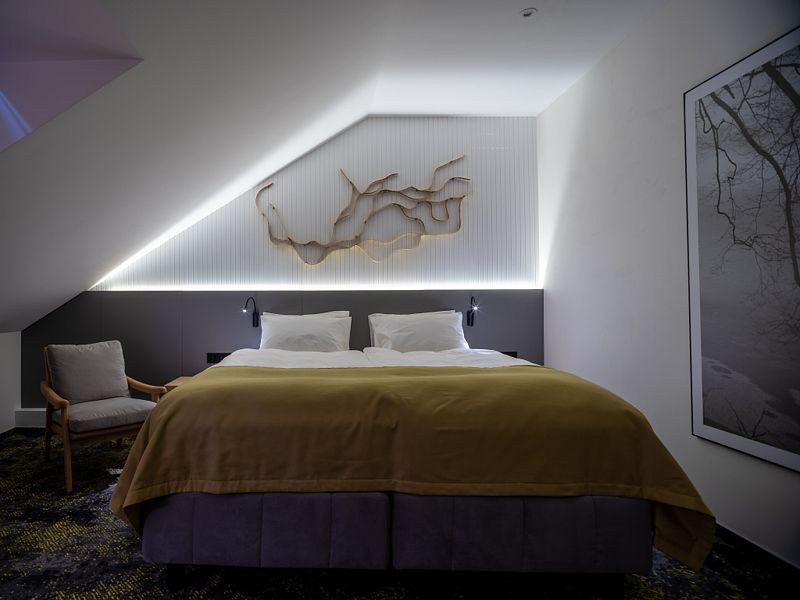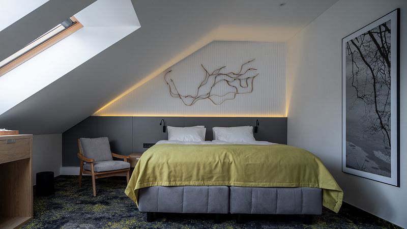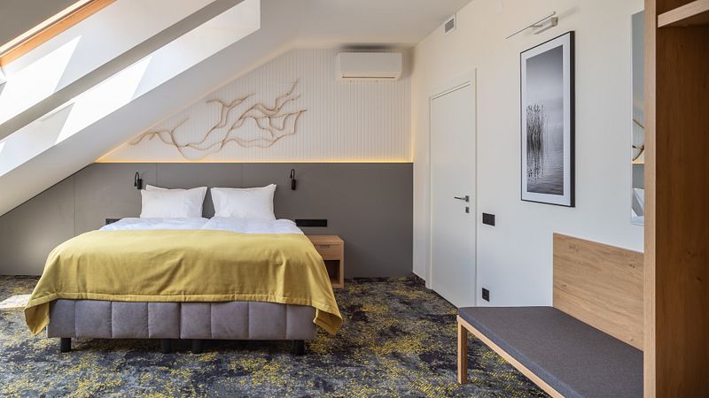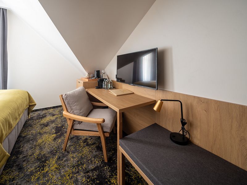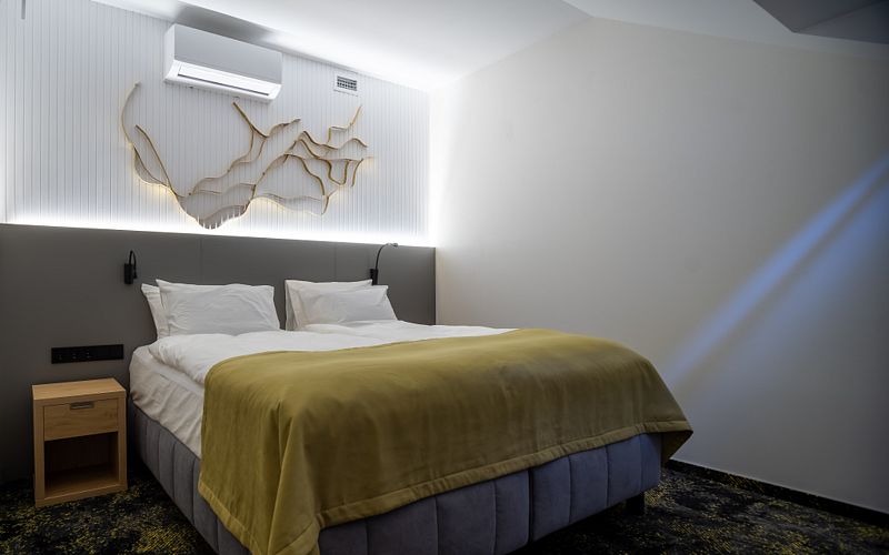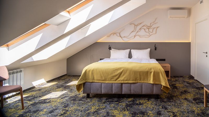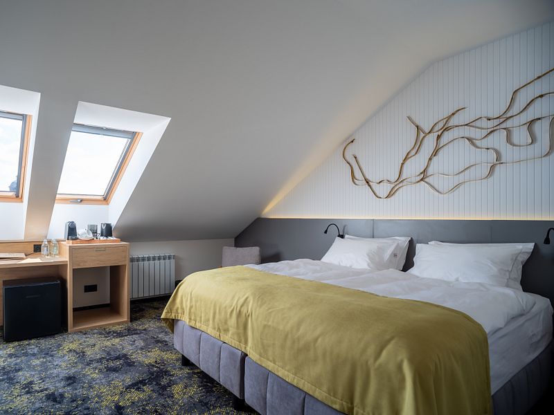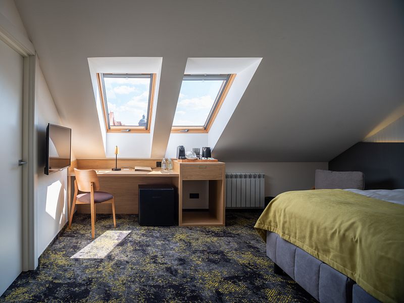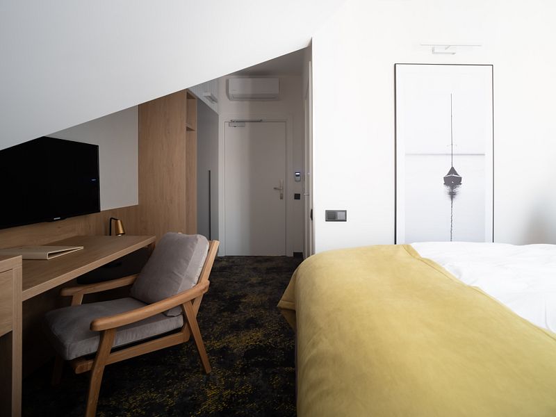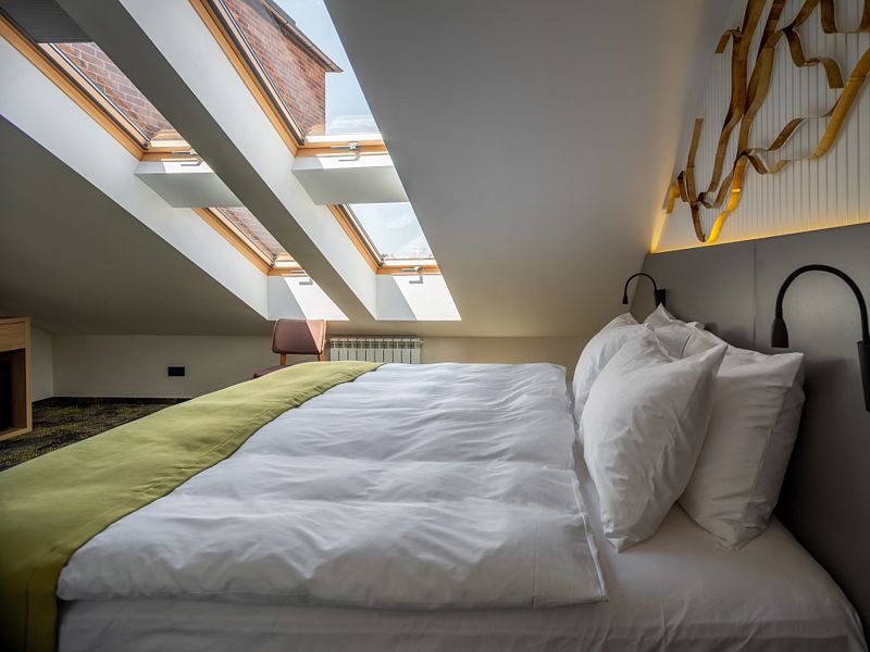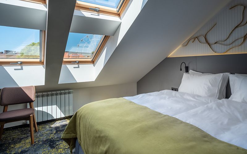 Двухместный комфортный номер с индивидуальным дизайном, расположен на верхнем этаже отеля.
