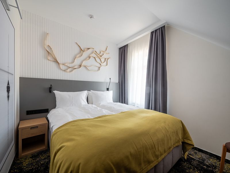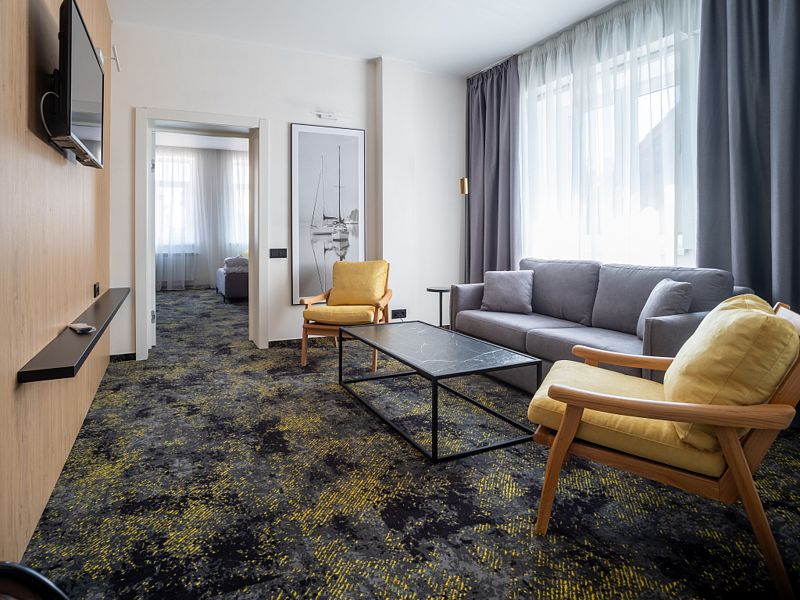 Family Deluxe - это идеальный вариант для размещения семьей или тёплой компанией. Это два просторных номера, соединенные в один: концепция номера означает удвоенный уют и комфорт для каждого гостя. Стильный дизайнерский интерьер, смежные комнаты по 22 квадратных метра - удобно для проживания вместе с детьми. Две двуспальные кровати с ортопедическими матрасами высотой 30 см легко превращаются в точки безмятежного отдыха, трансформируясь в односпальные. Подарите себе и своей семье превосходный отдых на Балтике, наполненный умиротворением и радостью совместного времяпрепровождения.Услуги и удобства