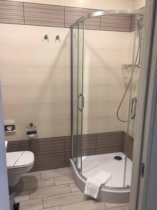 Ванная комната оборудована душевой кабиной, также имеется фен и полный набор гигиенических средств.