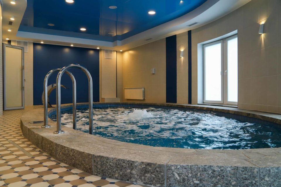 Тип бассейна: крытый бассейнВ бассейне вы можете поплавать в теплой воде, погреться в финской сухой сауне, а также побаловать себя гидромассажем и гейзерным теплым фонтаном. До 6 человек.