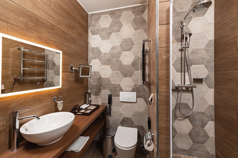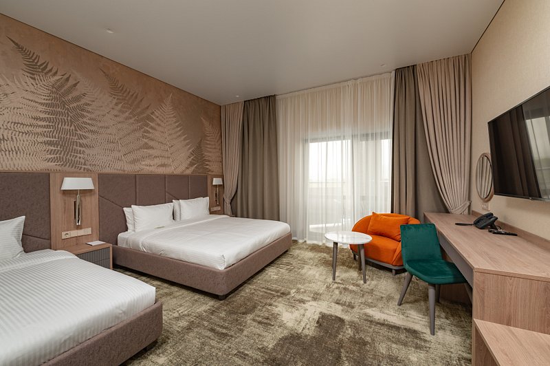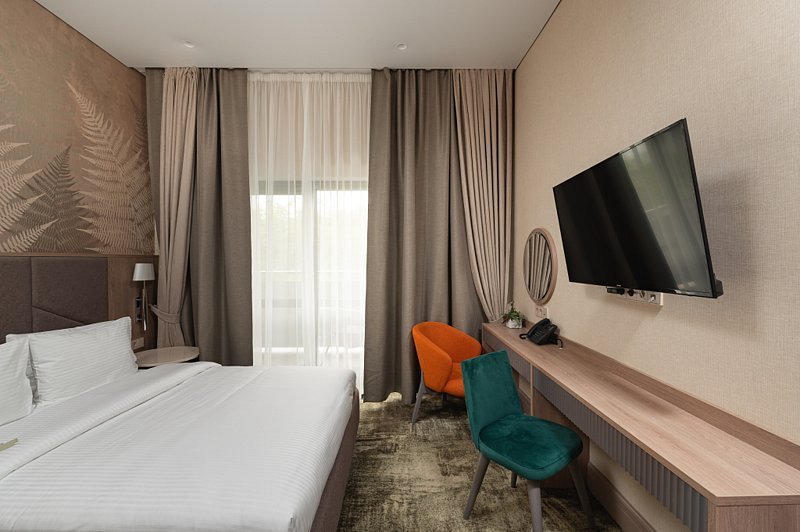 В номере вы найдёте телевизор и мини-бар. Оснащение зависит от выбранной категории номера.