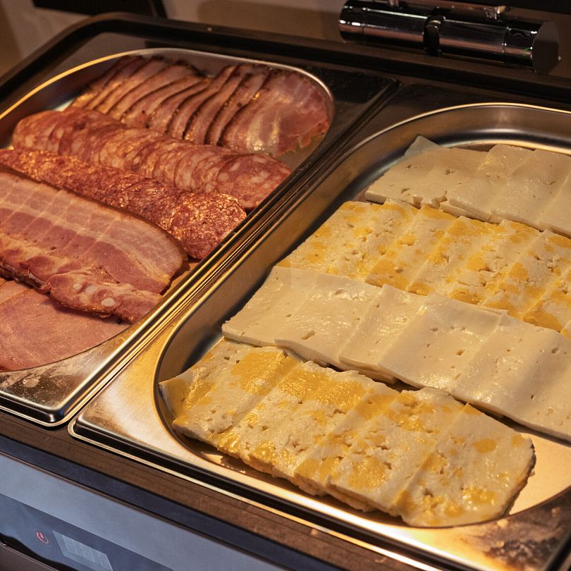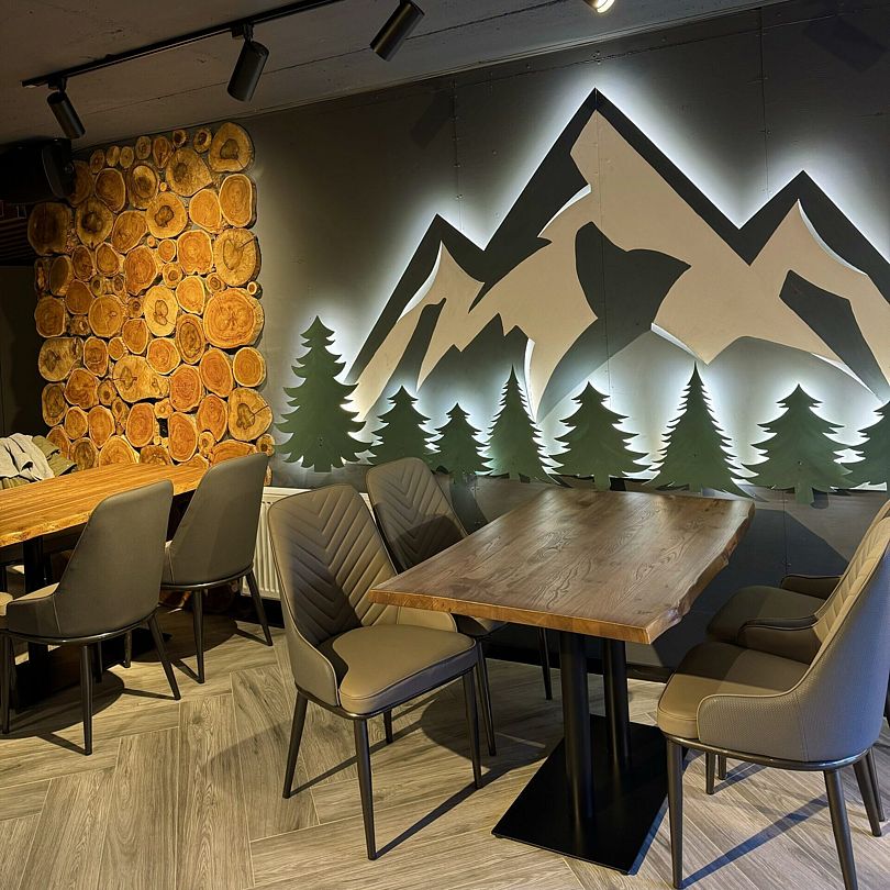 Основной ресторан удобно расположен на первом этаже здания, площадью 140 м² с возможностью одновременной посадки до 80 человек.