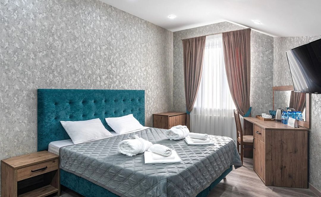 двуспальная кровать, ТВ, х, фен, чайная станция, халат, тапочки, гигиенические принадлежности, с/у, wi-fi