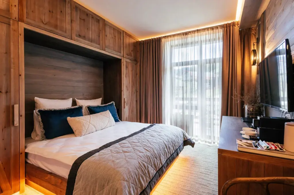 Оформленный в традиционном альпийском стиле, отель сочетает элегантный уют с самой насыщенной спортивной инфраструктурой на курорте.