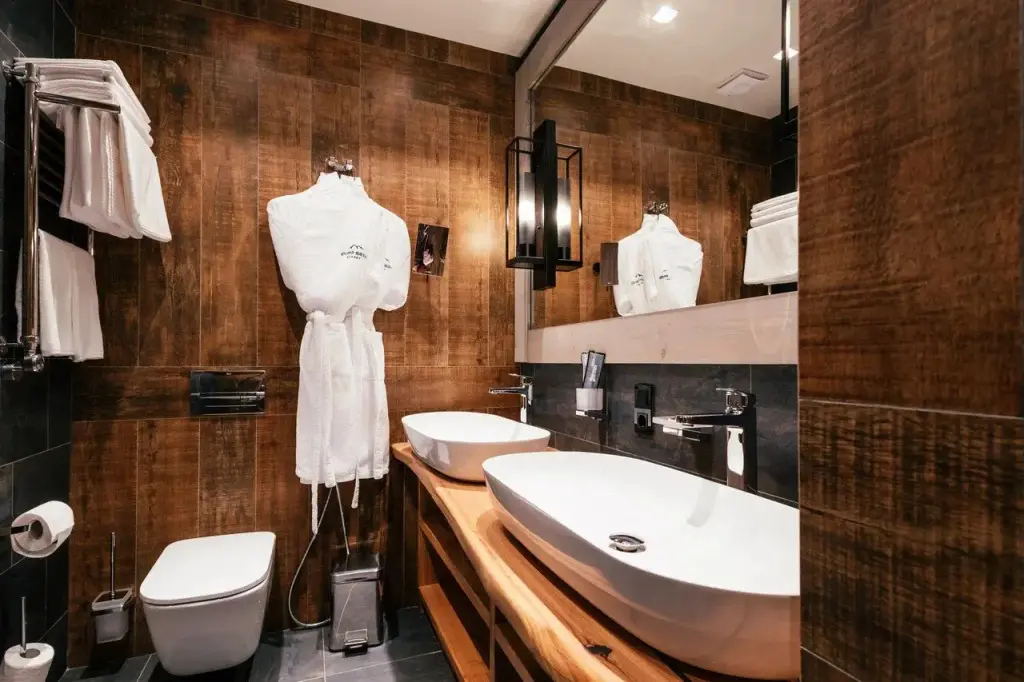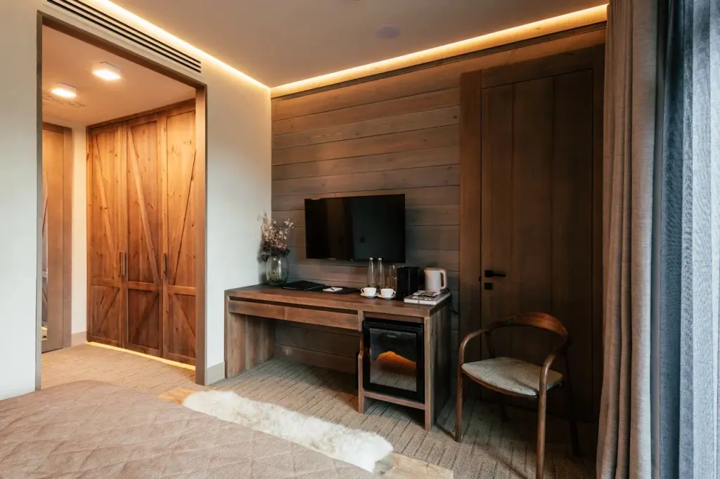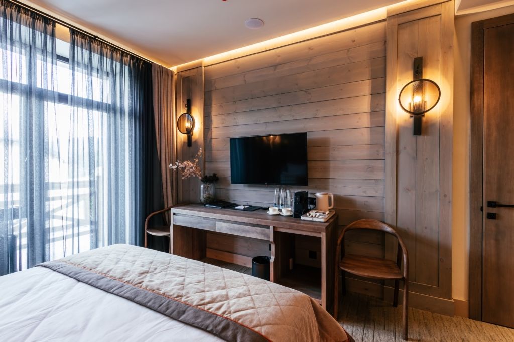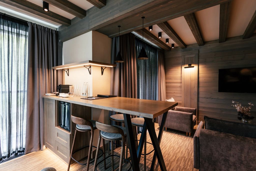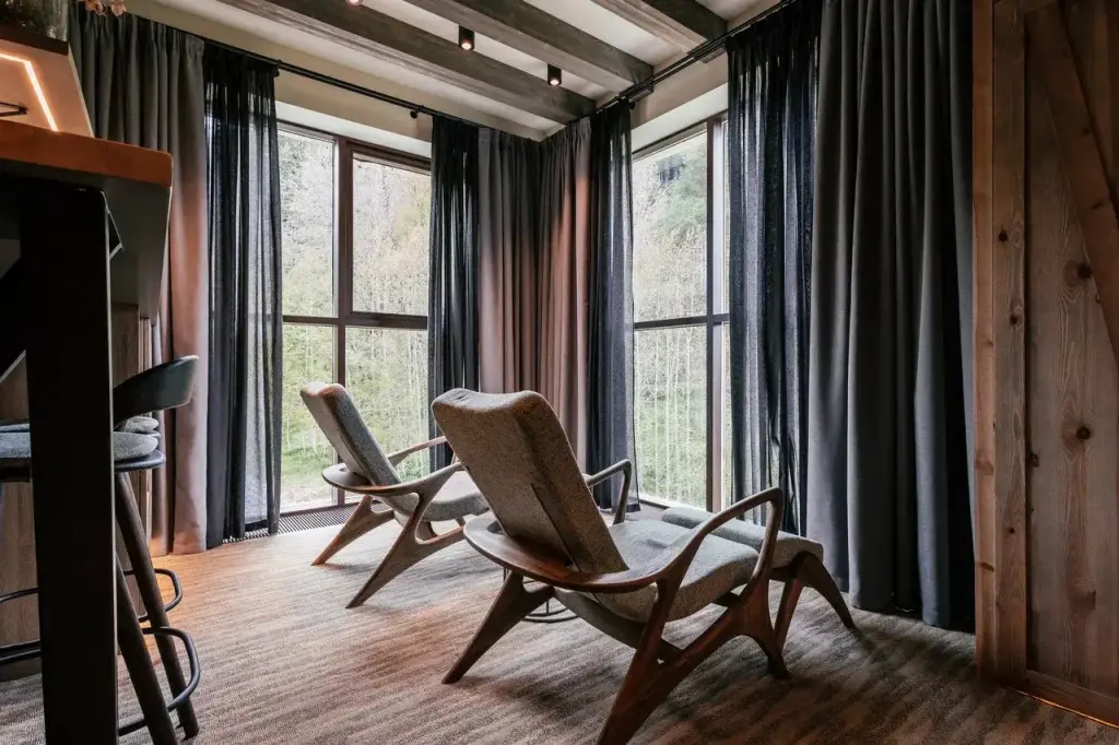 В дизайне курорта сочетаются натуральное дерево, камень и текстуры, создавая особенную атмосферу. Система Ski in / Ski out позволит гостям попасть на склон прямо от дверей отеля, чтобы насладиться зимними развлечениями. На территории комплекса гости найдут рестораны, бары, SPA-комплекс, джакузи под открытым небом, фитнес-зал и множество других удобств.