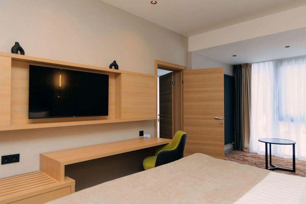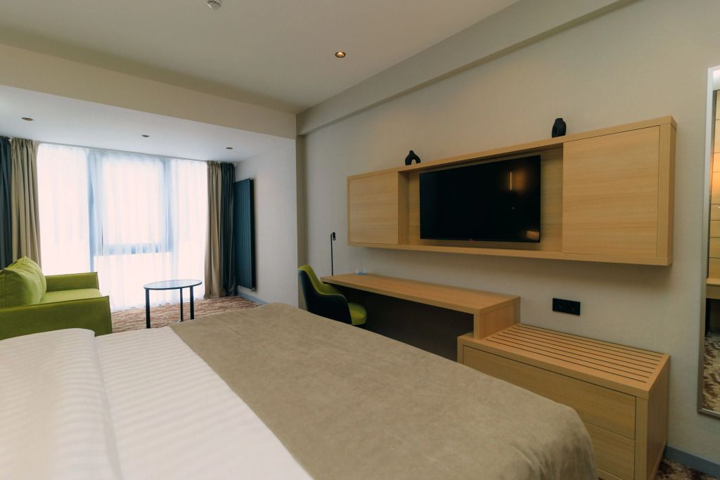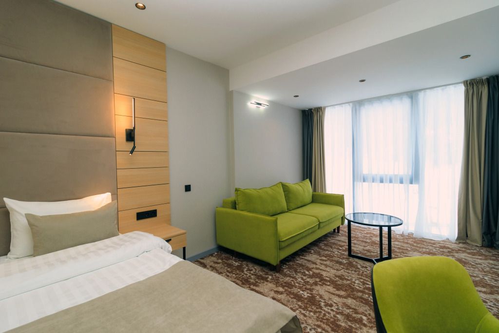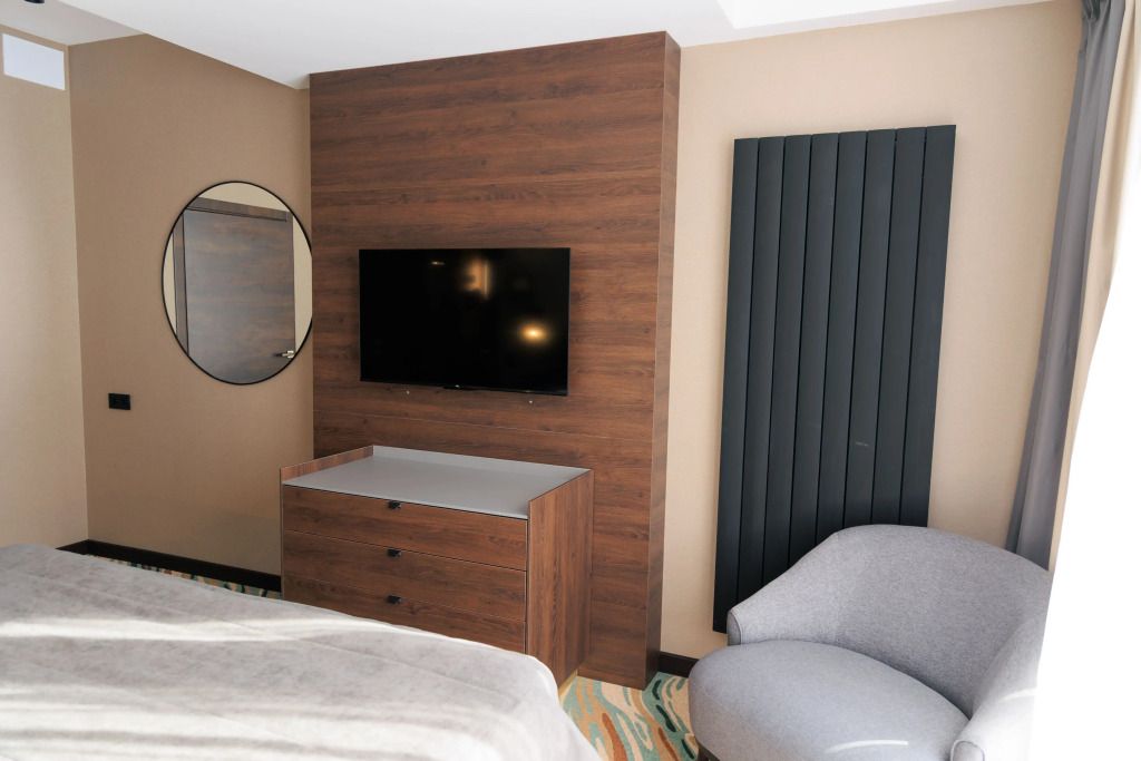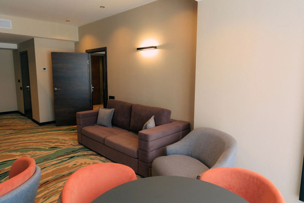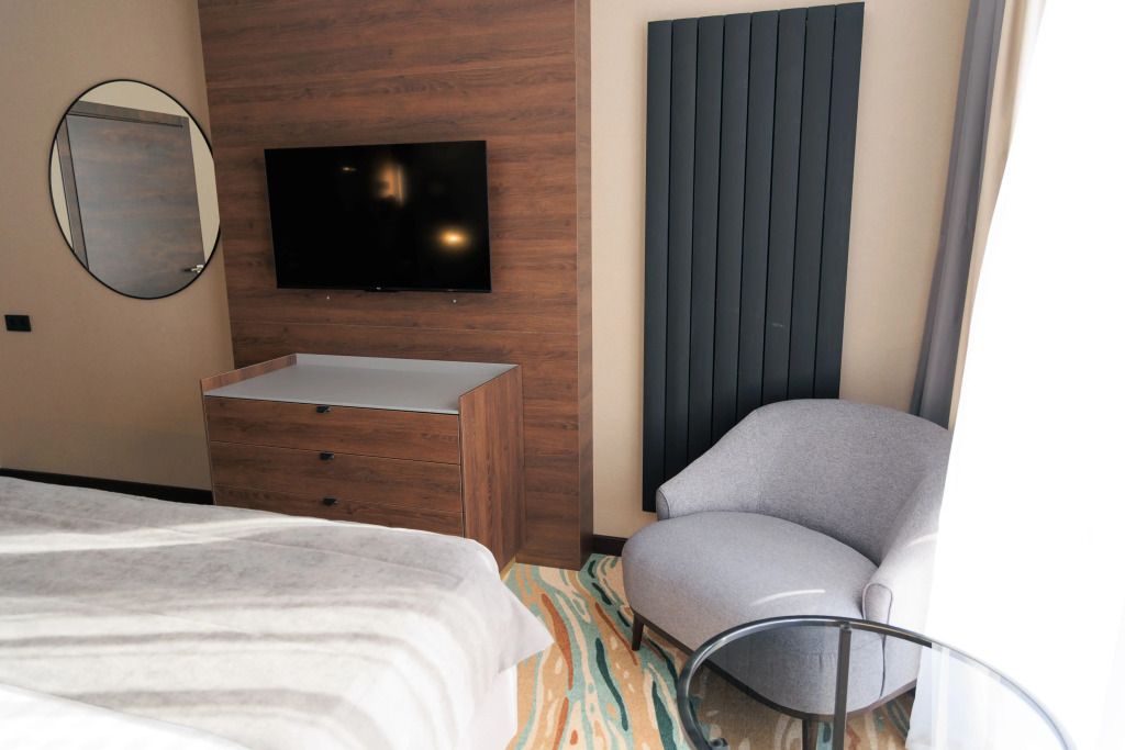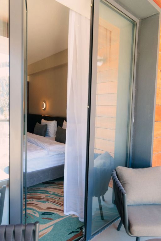 Люкс двухместный двухкомнтаный с доп. местом, с балконом и понорамным окном. Две ванный комнаты