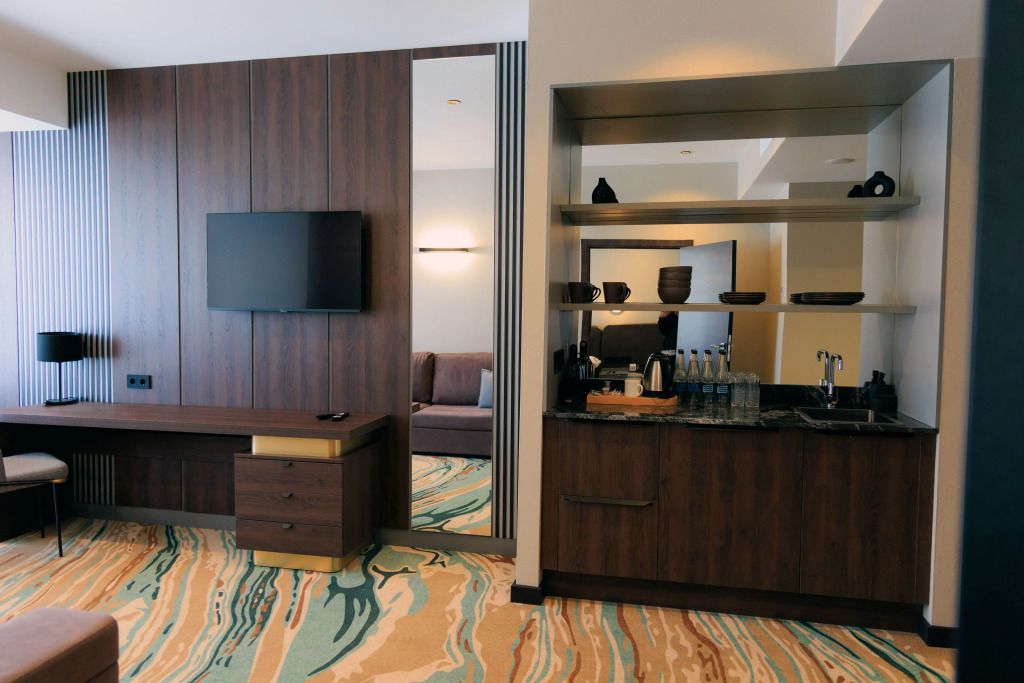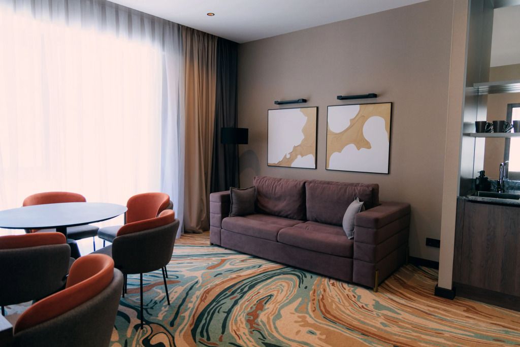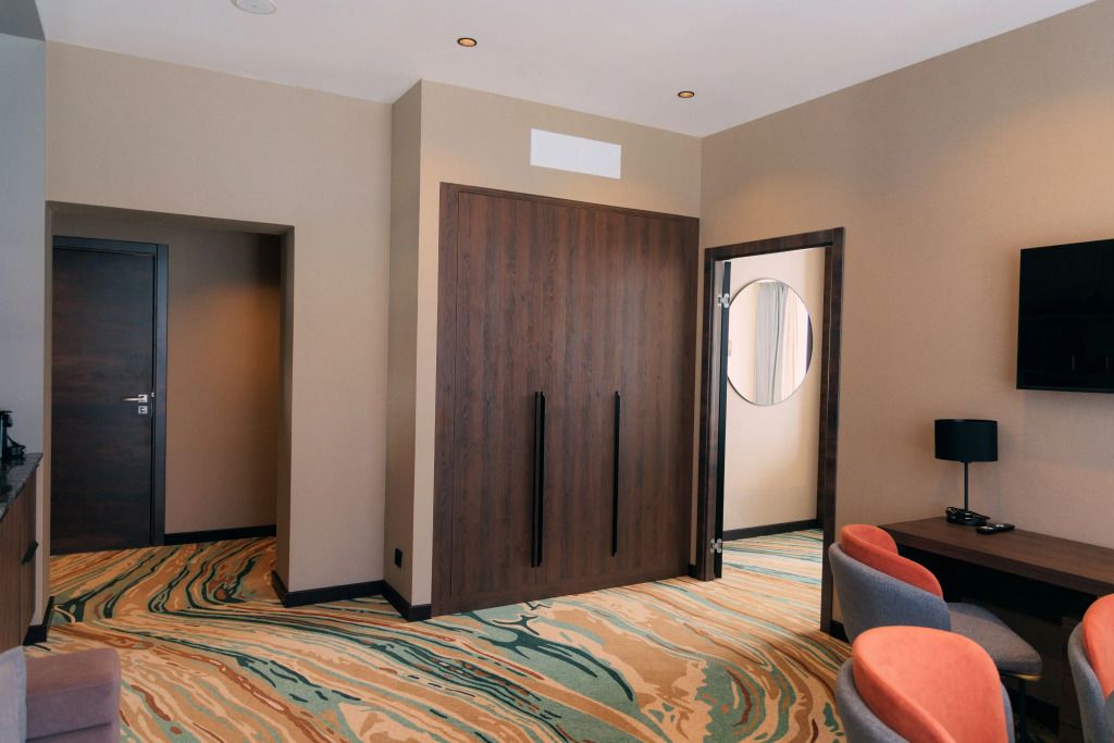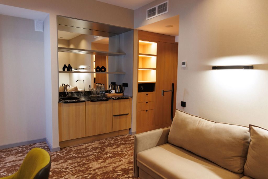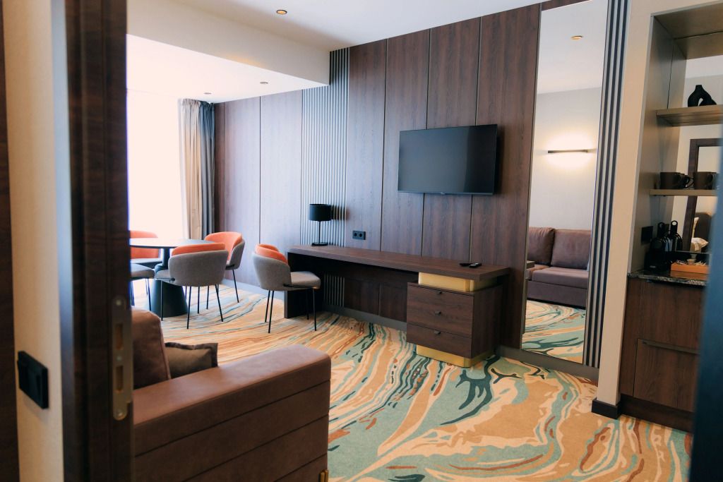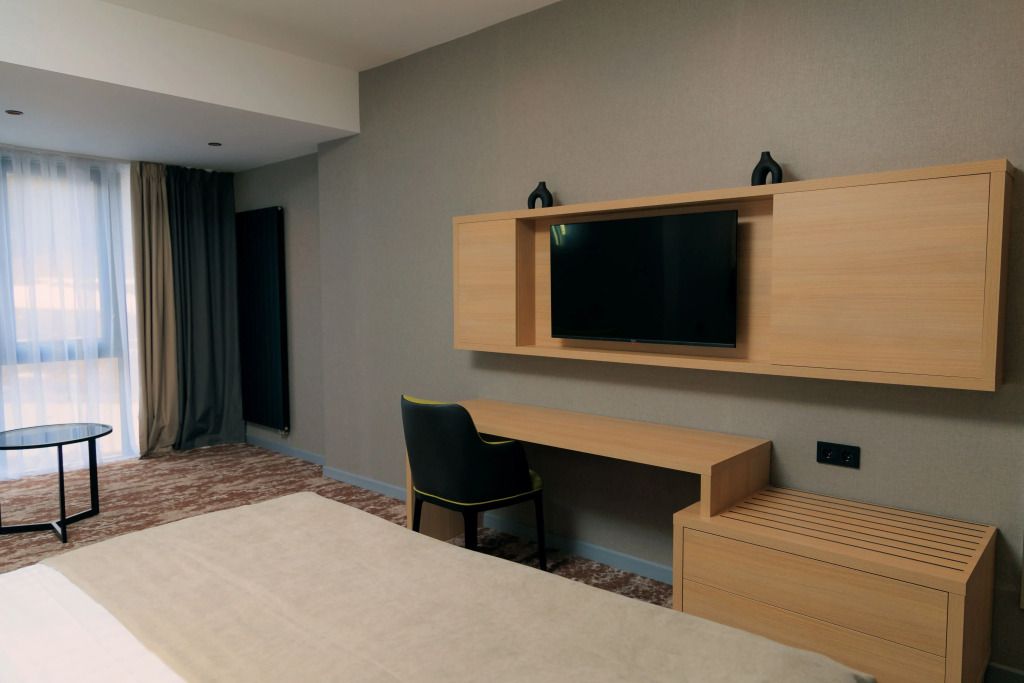 Люкс двухместный двухкомнтаный с доп. местом, с балконом и понорамным окном. Две ванный комнаты