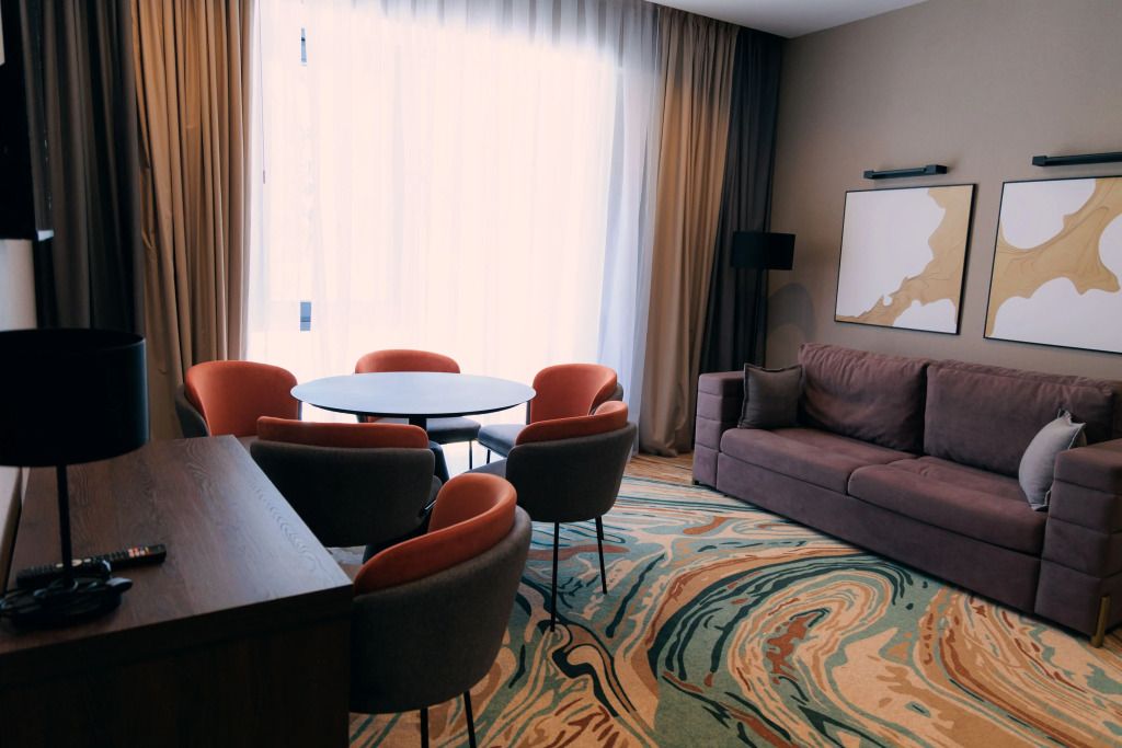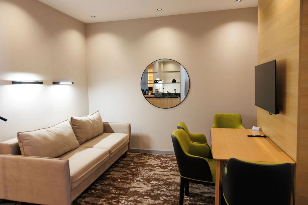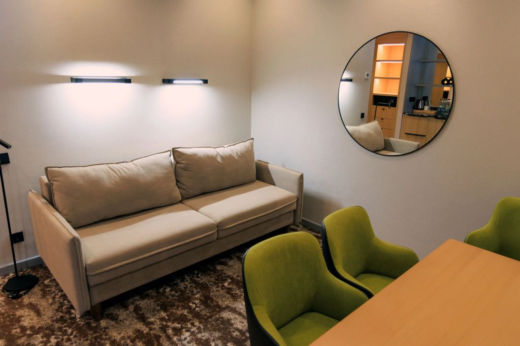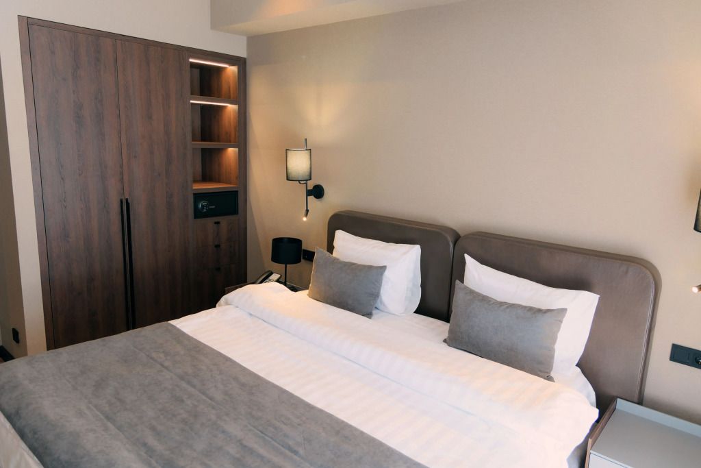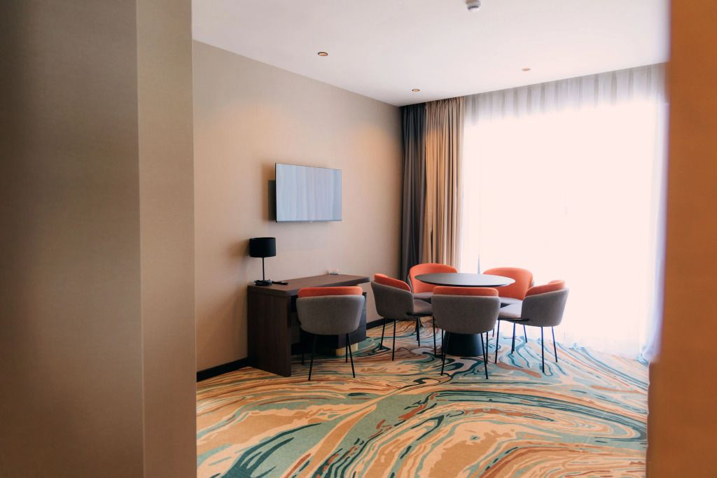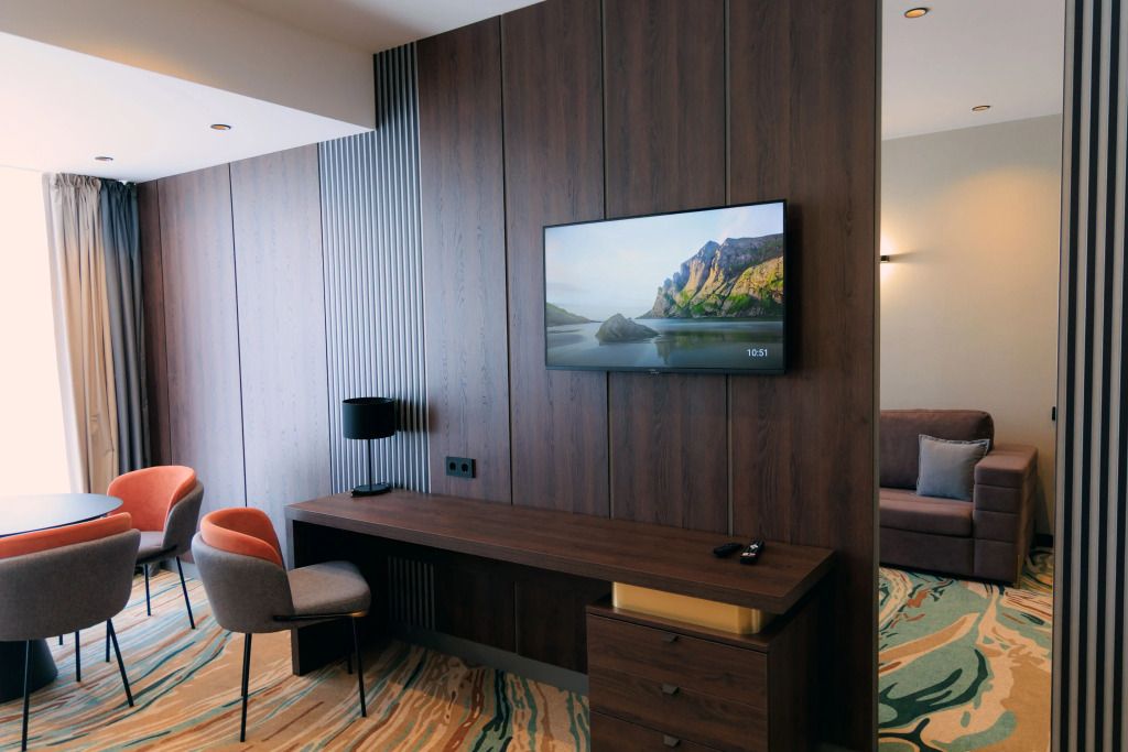 Люкс двухместный двухкомнтаный с доп. местом, с балконом и понорамным окном. Две ванный комнаты